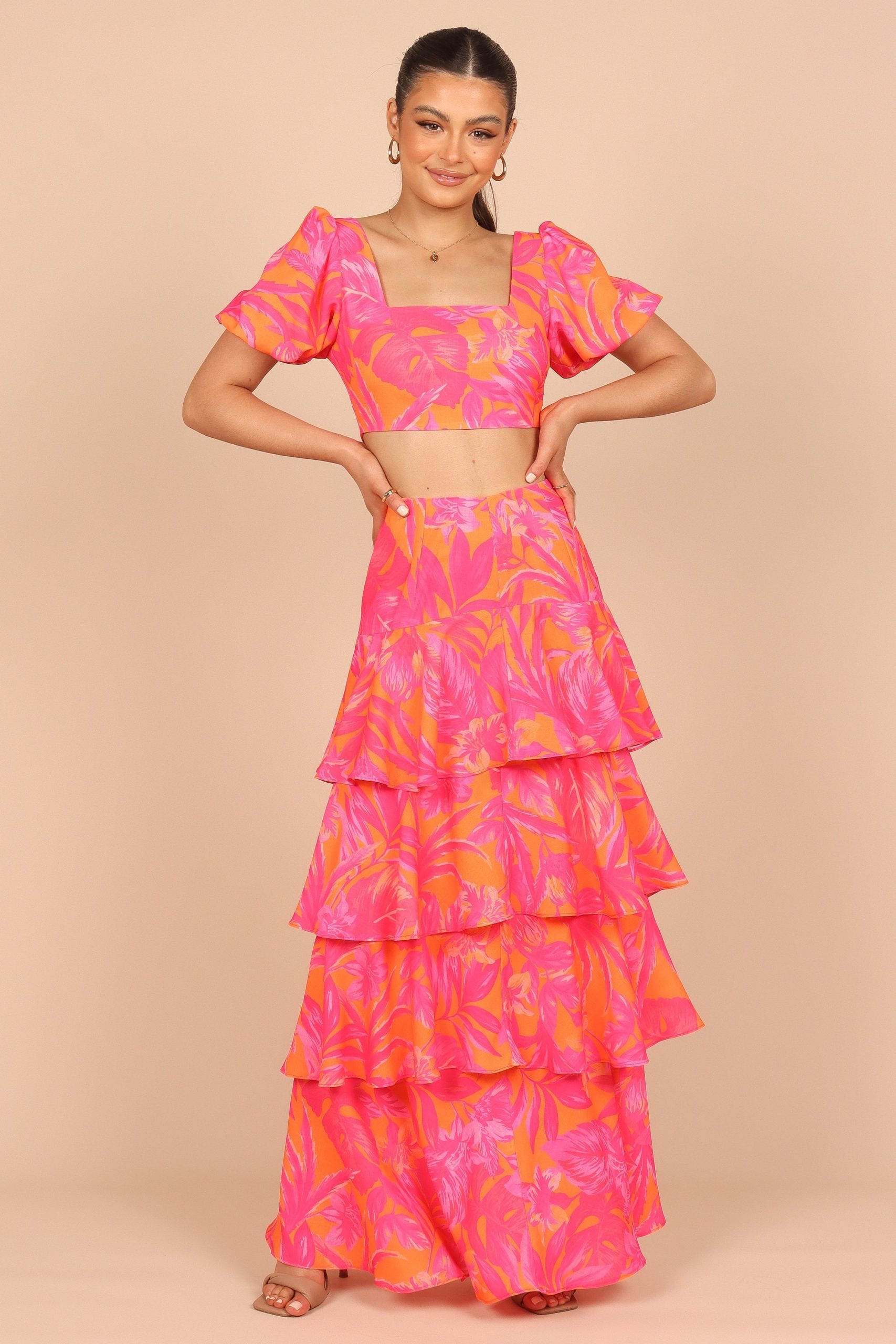 This stunning cropped length top features a square neckline. short sleeves with elasticised cuffs and a back gold zip. Its bright and bold large pink floral print is sure to make you stand out in any outfit!