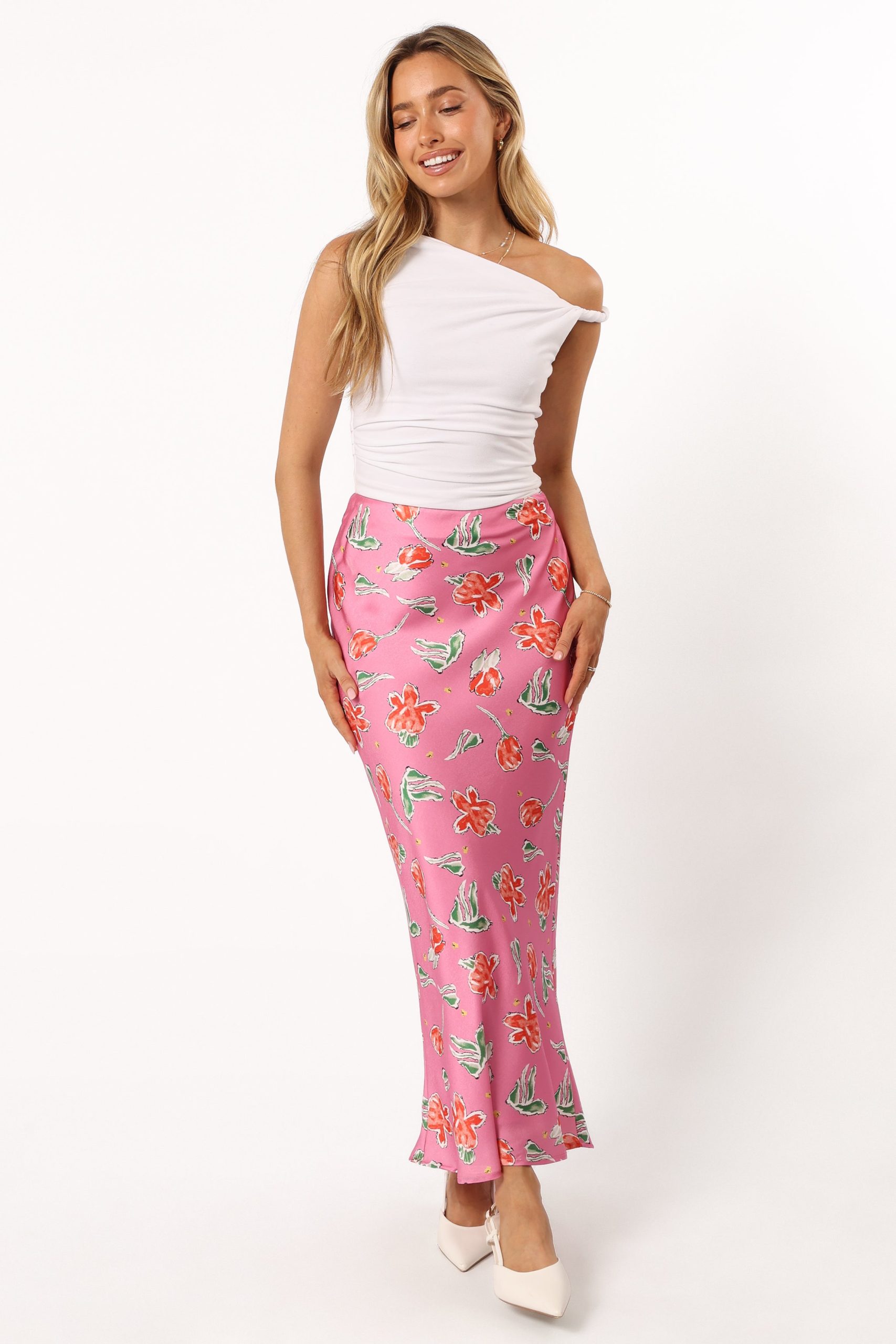 This midi length skirt is the perfect addition to your wardrobe. The slip style with invisible side zip ensures a comfortable fit. while the floral print detail gives it an extra touch of fun.