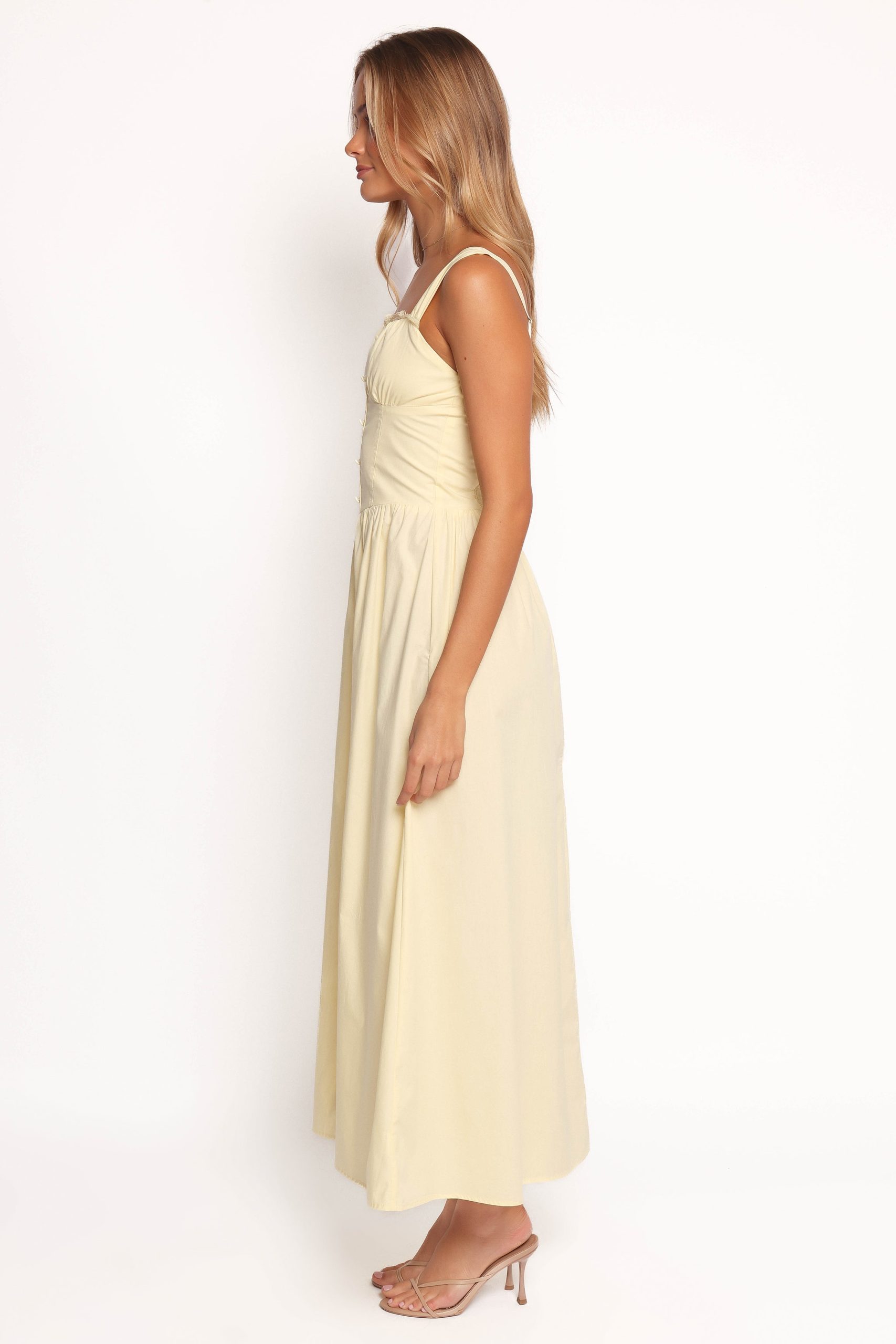 This maxi-length dress flows beautifully with its A-line skirt. creating a graceful silhouette that moves with you. The square neckline and wide adjustable straps strike the perfect balance between timeless elegance and modern detailing.