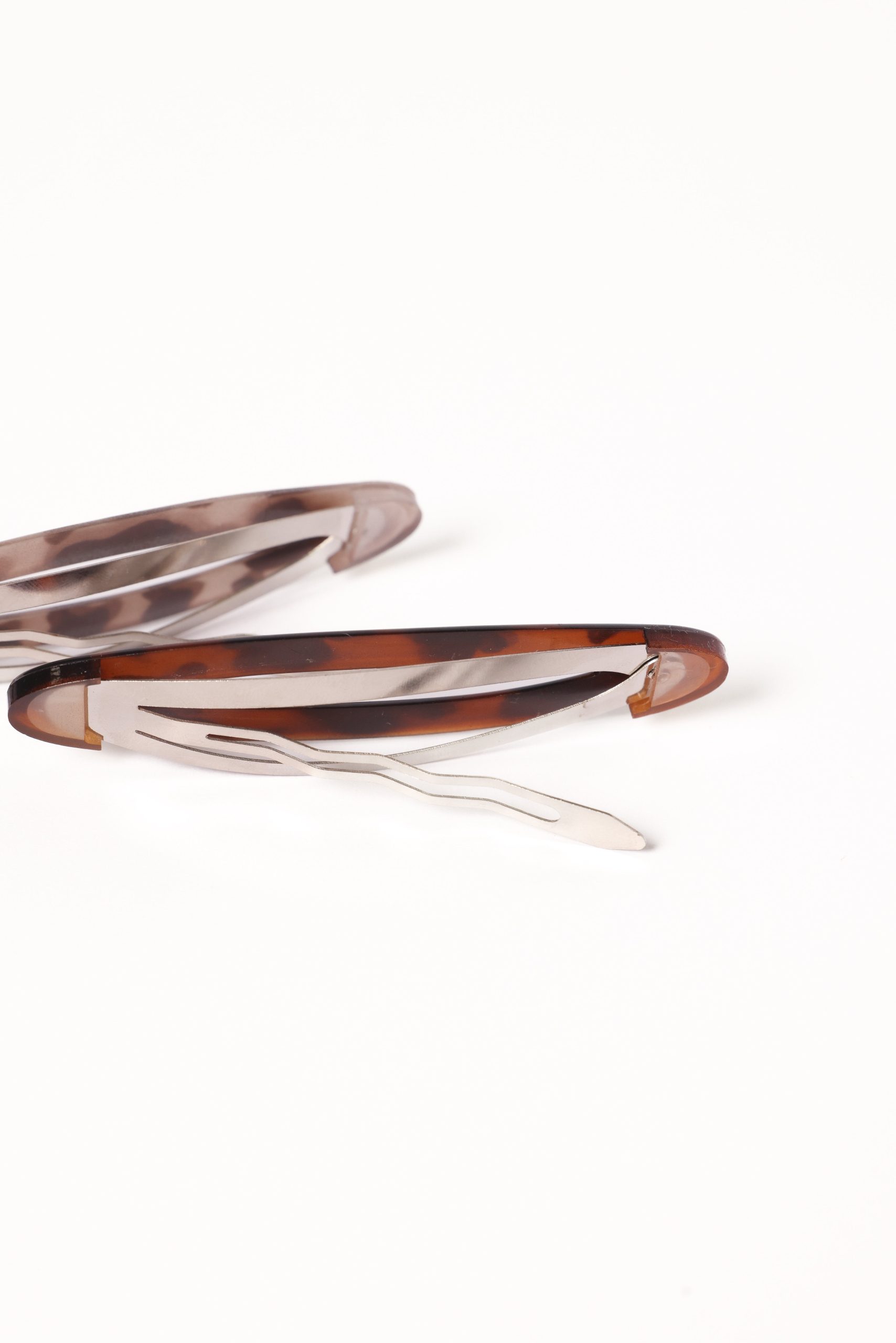 Effortlessly elevate your style with the Blakely Hairclip Set – Tort. This set of two barrette-style clips features a chic oval design. perfect for taming stray strands or enhancing any hairstyle with subtle sophistication.