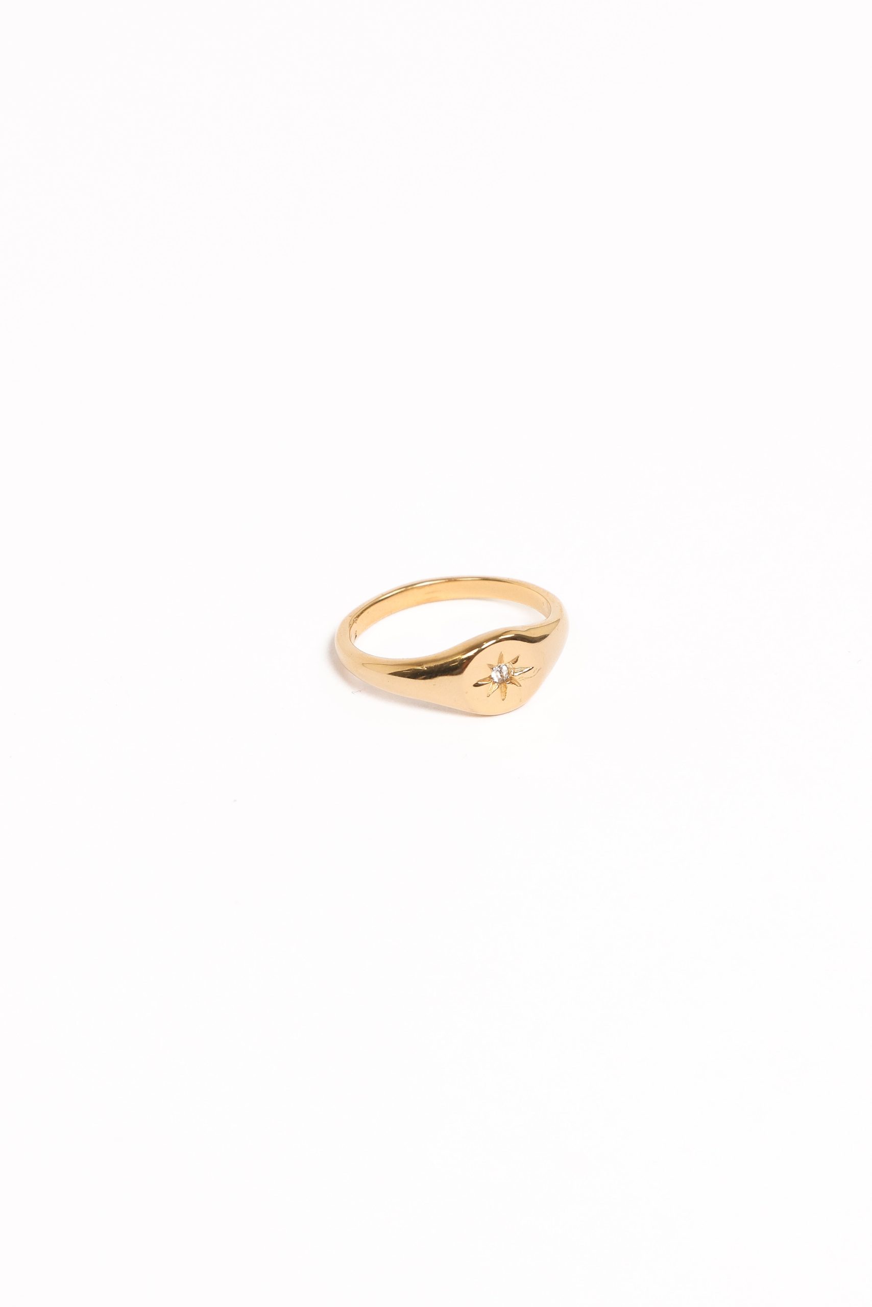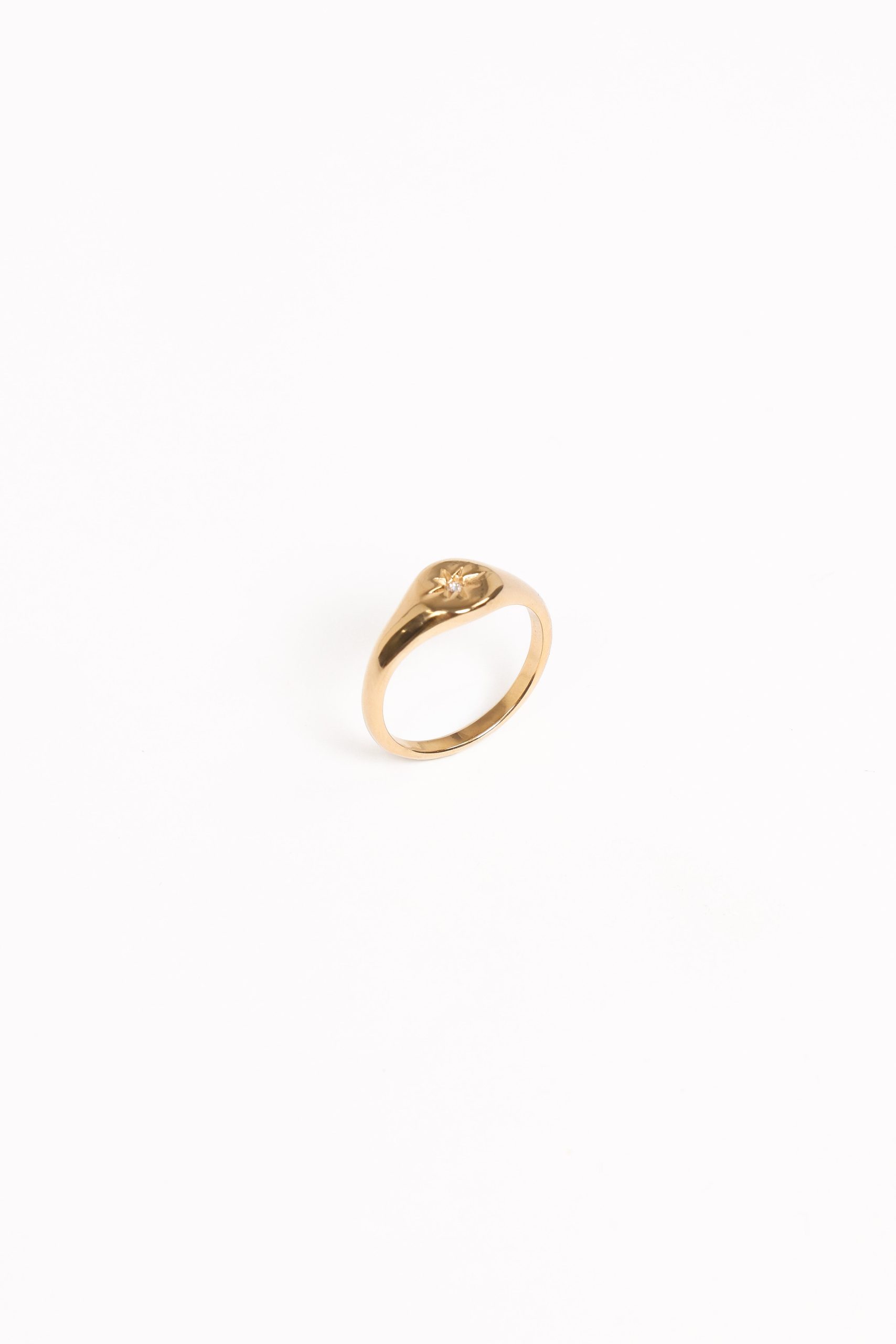Add a little celestial charm to your jewellery collection with the Campbell Ring in Gold. Featuring an engraved star design that feels both dreamy and modern. this ring is a true standout.