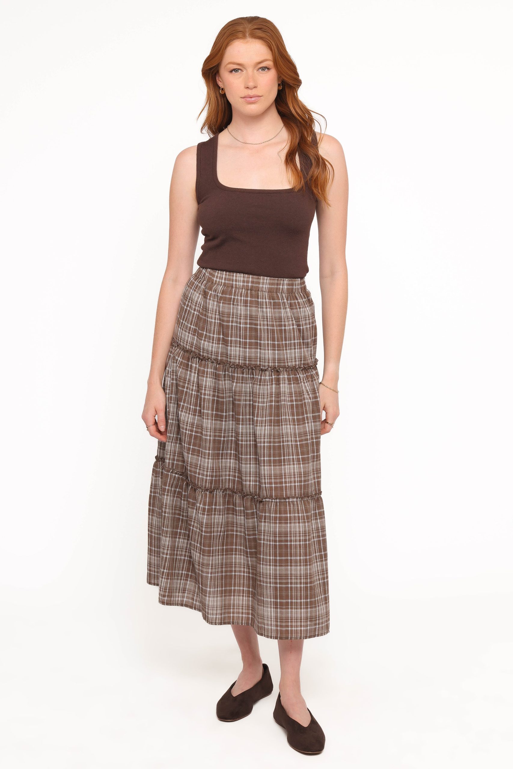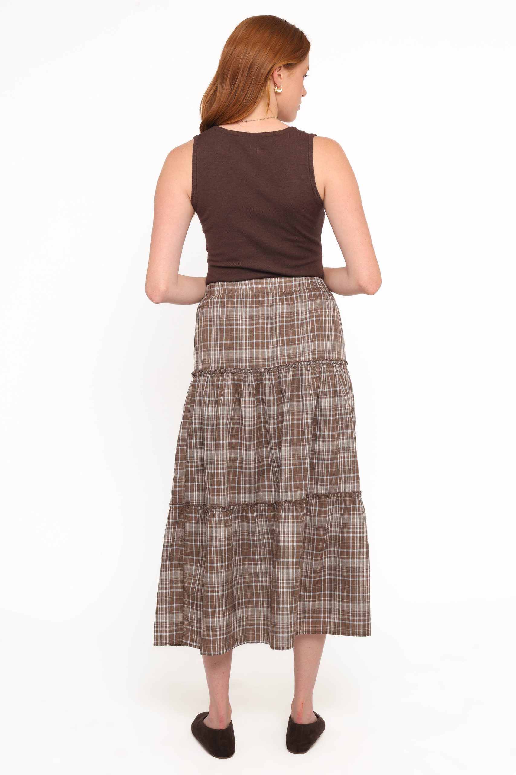 Make a statement with the Campbell Tiered Maxi Skirt in Juno Check. a stunning piece that effortlessly elevates your wardrobe from ordinary to extraordinary. The high-rise waist creates a beautifully elongated silhouette while the elasticised waistband ensures all-day comfort.