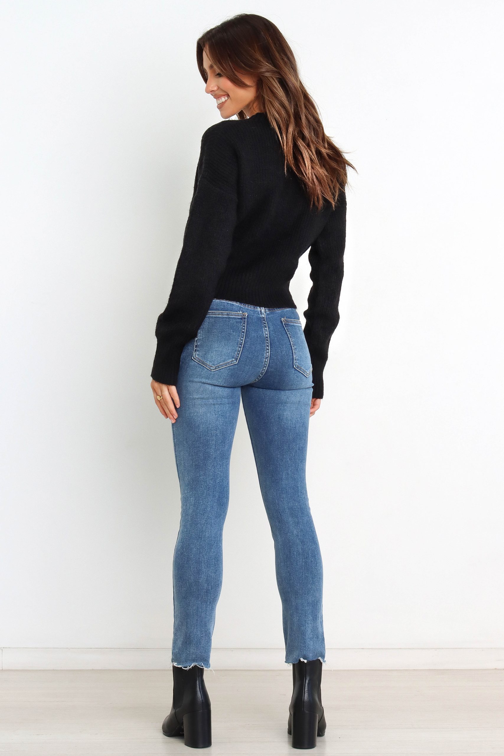 This fall. stay cozy and stylish with this knit sweater! Featuring a round ribbed neckline for a classic look. long sleeves with ribbed cuffs to keep you warm. and a waist tie feature to flaunt your curves – this knit sweater is sure to turn heads. Crafted from the softest fabric so you can lounge in luxurious comfort all season long!