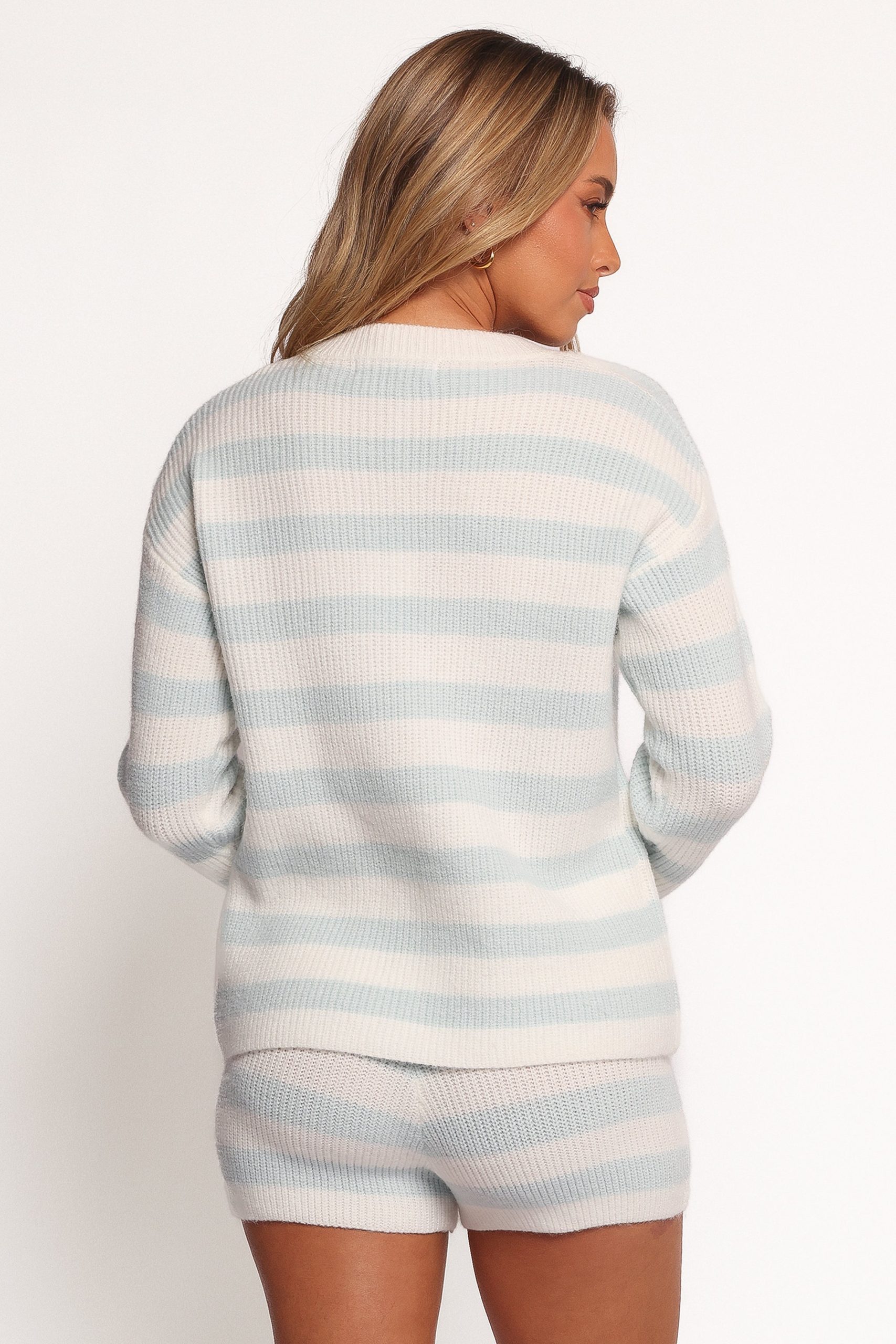 Chill in style with the Ciaran Knitted Short Set in Cream Blue. the perfect mix of cozy and chic for effortless everyday wear. This sweater and shorts combo is designed with a round neckline. long sleeves. and high-waisted shorts that move with you all day.