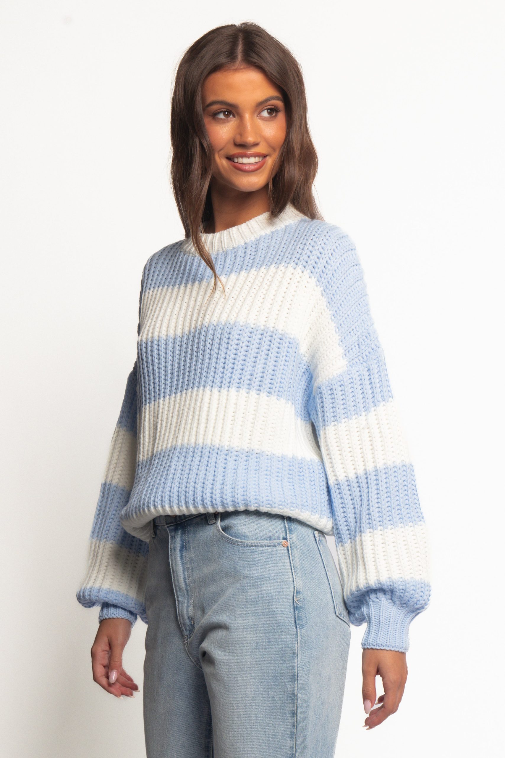 Courtney Thick Stripe Knit Sweater – Blue Cream