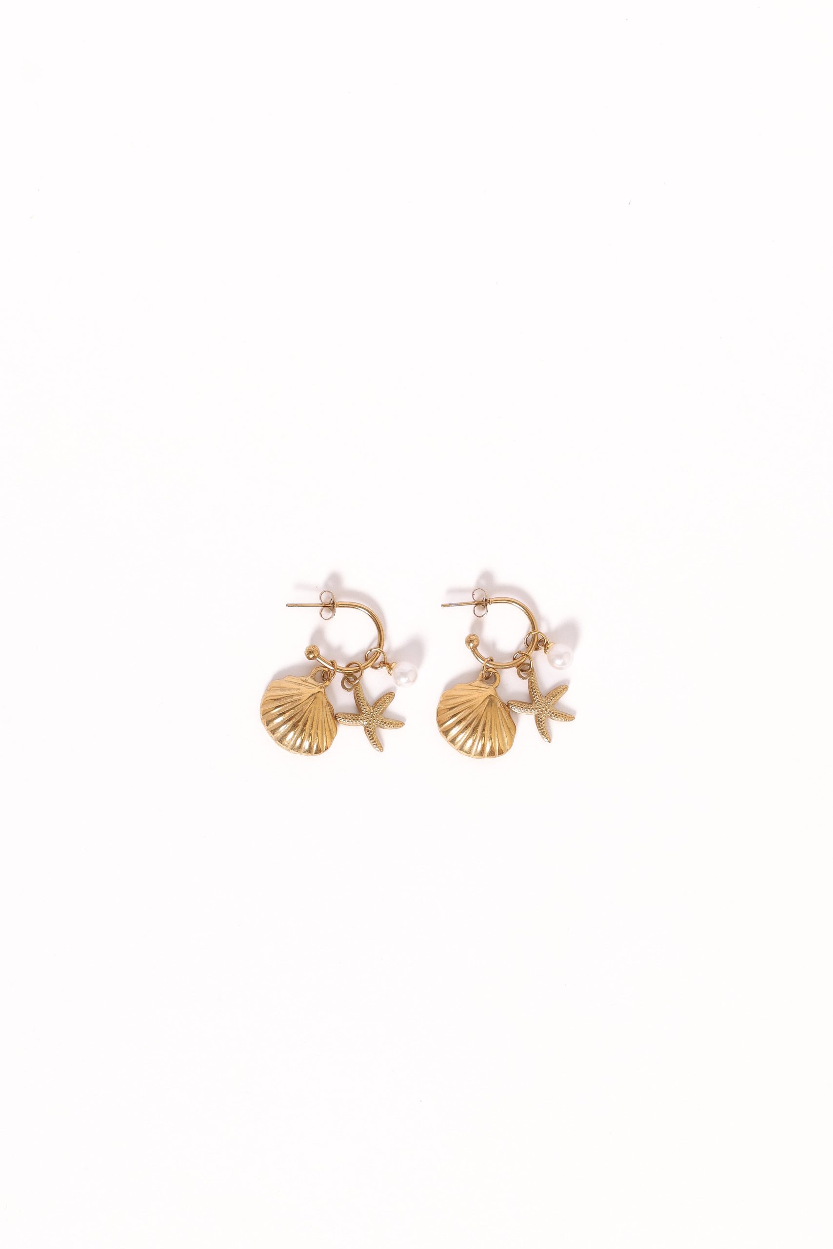 Elevate your accessorising game with the Cypress Earrings in Gold. perfect for adding a touch of sophistication to any outfit. These drop-style hoop earrings feature a delicate starfish and faux pearl detail that exudes timeless elegance.