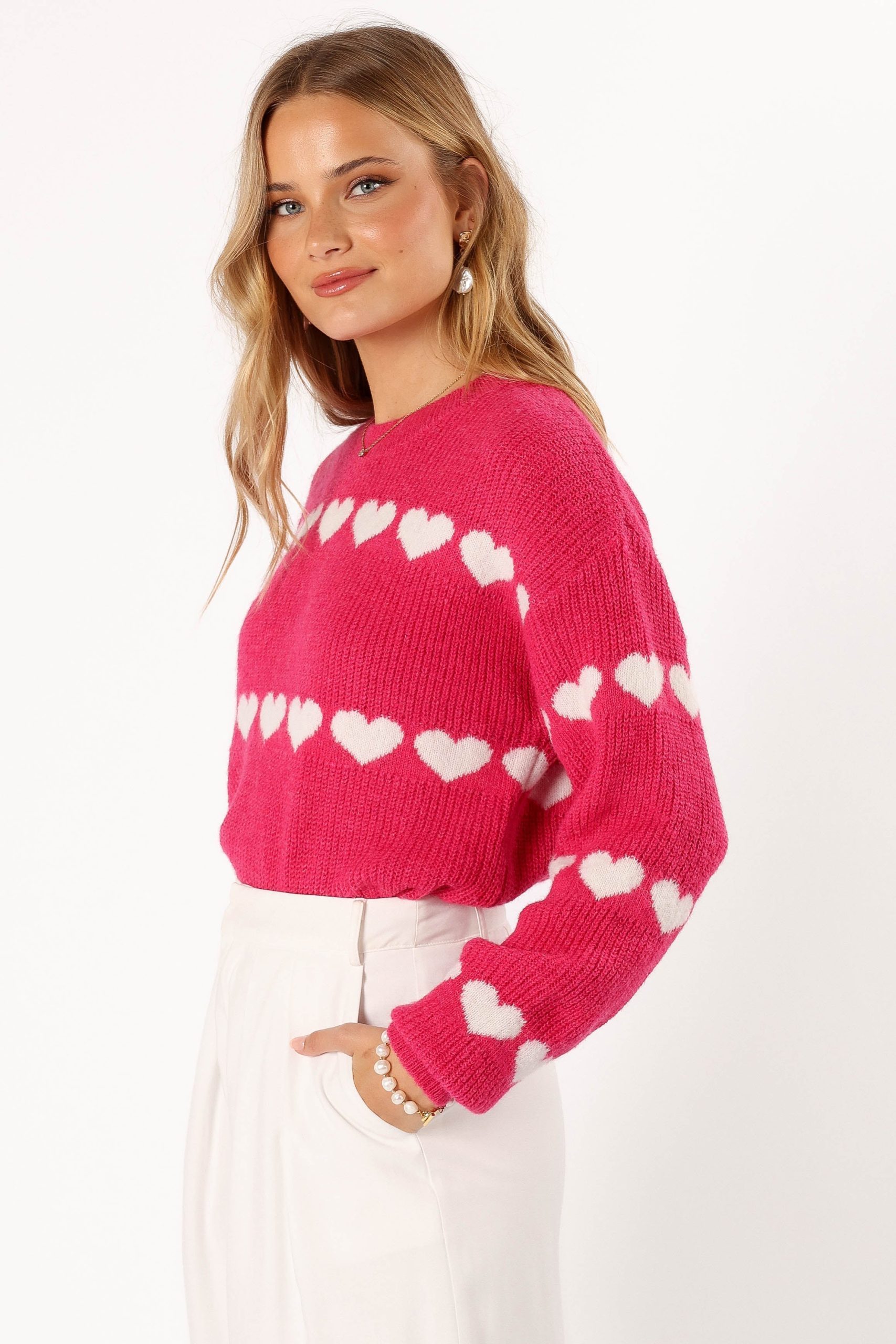 This cozy knit sweater features a classic round neckline and long sleeves with ribbed cuffs. Perfect for pairing with your favourite jeans or skirt. it’s an eye-catching piece that you’ll reach for time and time again.