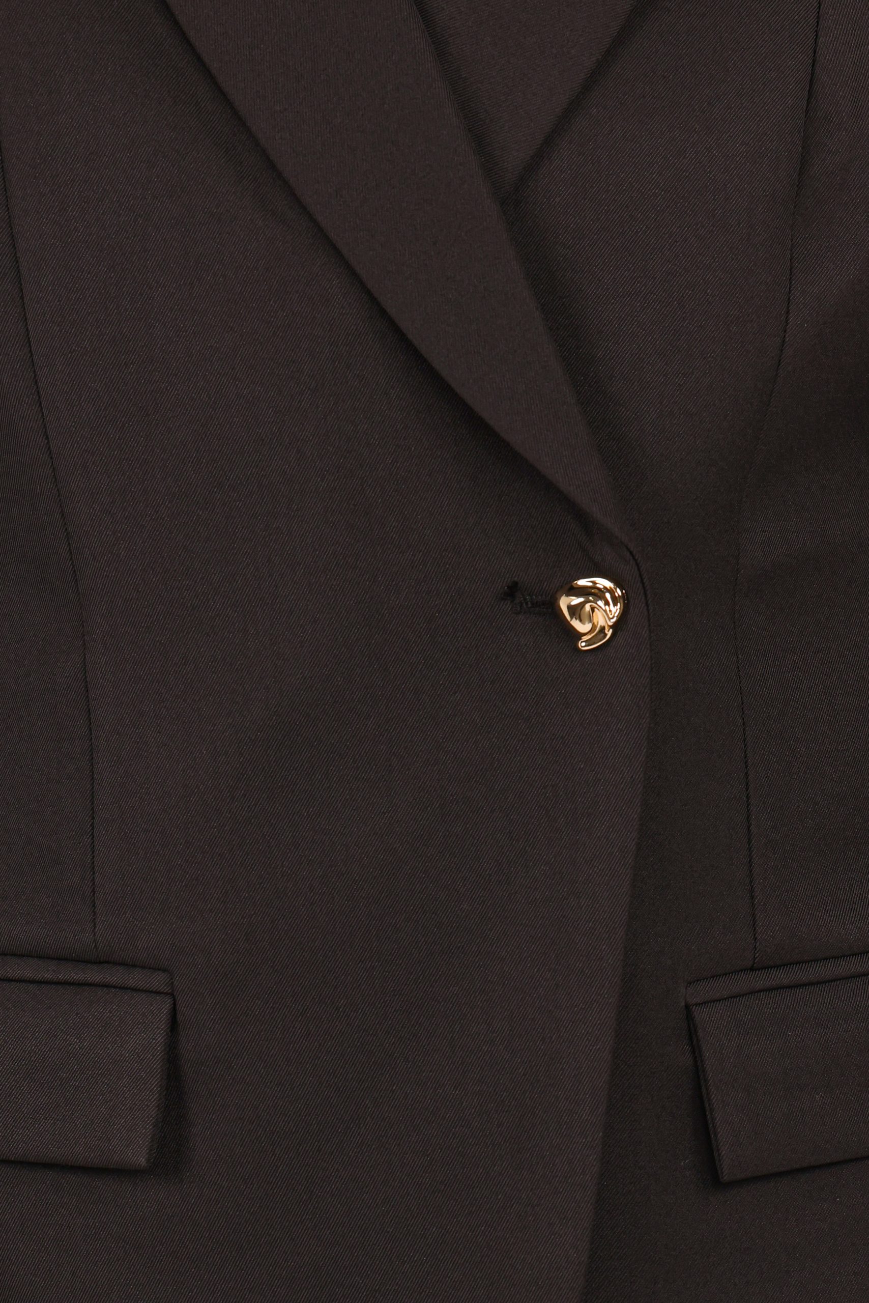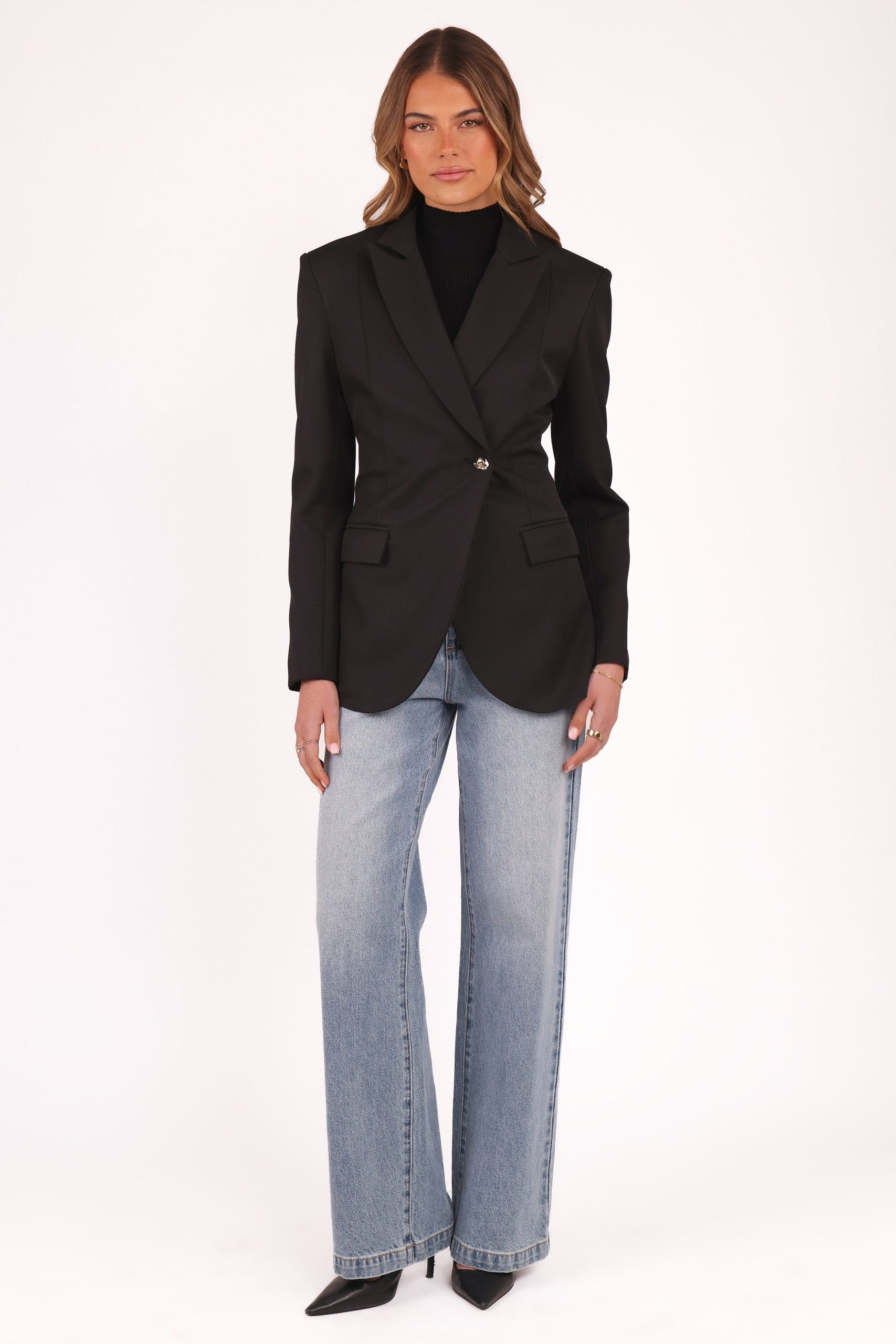 Designed with a timeless collar and sleek notch lapels. this blazer brings modern sophistication to any look. The tailored silhouette features subtle shoulder pads for structure. long sleeves with button-close cuffs. and a functional front pocket that blends practicality with style.