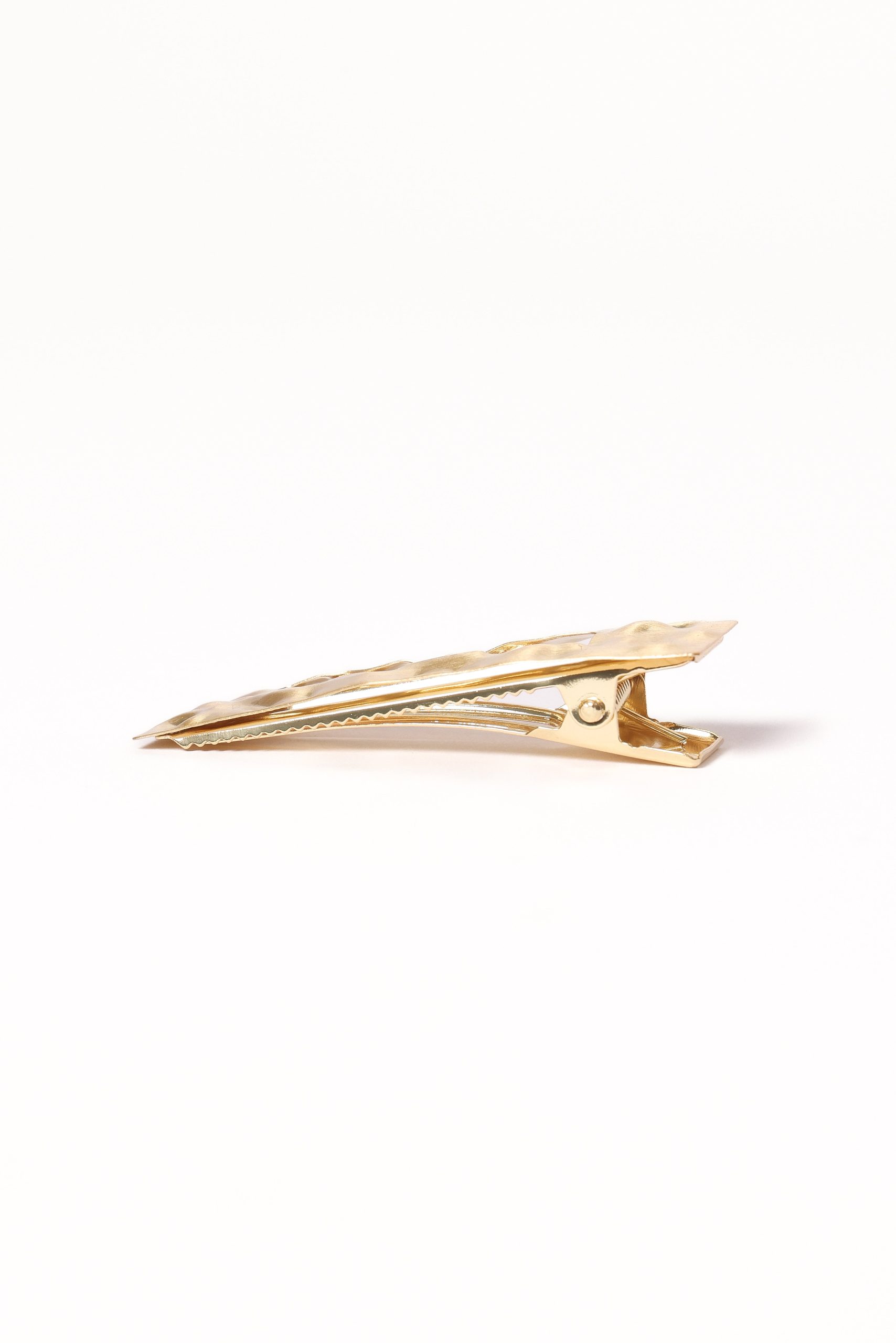 Add a touch of effortless glamour to your look with the Deborah Hairclip in Gold. Featuring a striking molten design crafted from sleek gold metal hardware. this clip makes a bold statement without overwhelming your style.