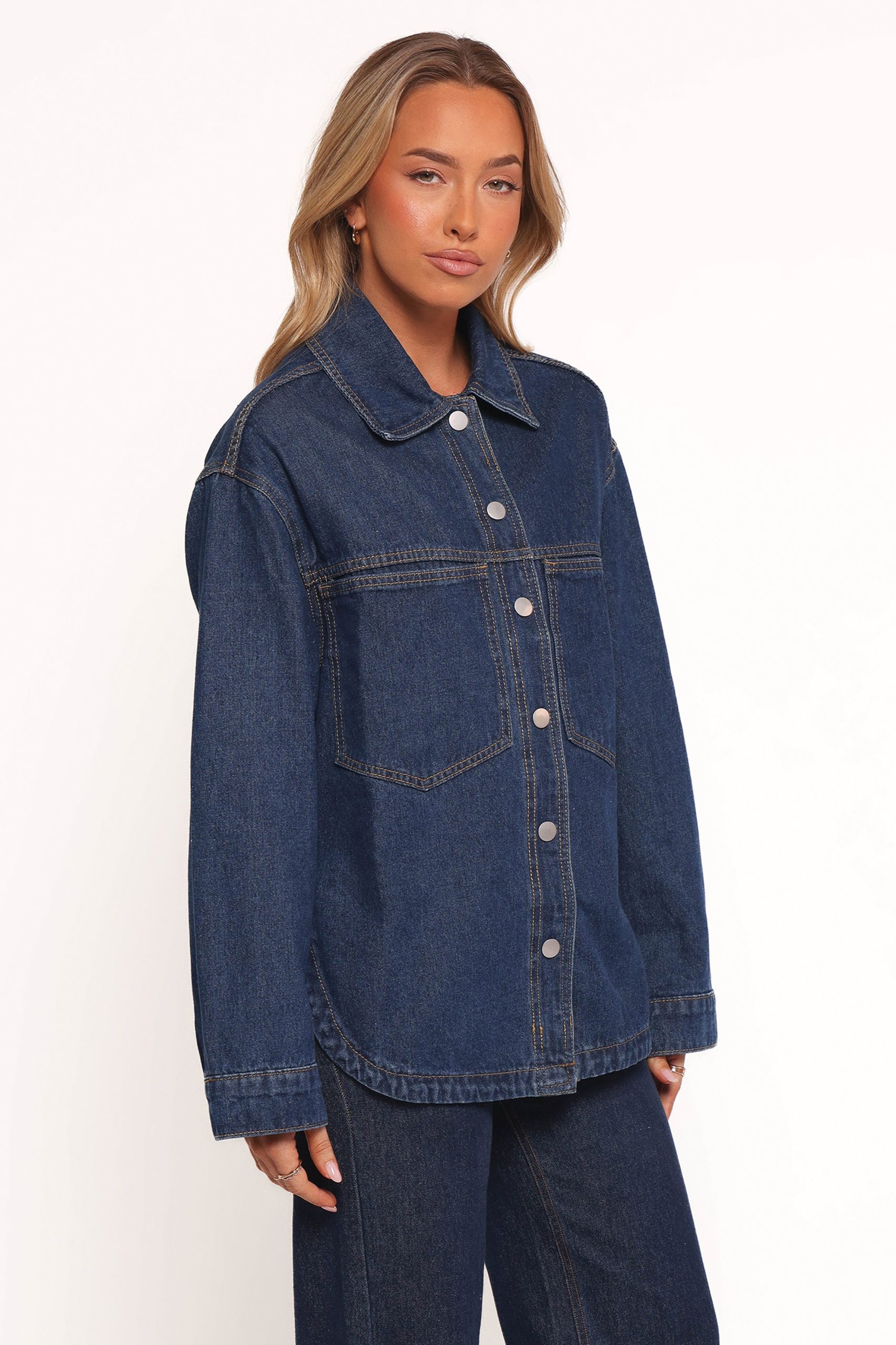 Elevate your layering game with the Dede Denim Shacket. the ultimate blend of casual comfort and timeless style. Crafted in versatile denim with tonal stitching. this shacket combines the structure of a jacket with the ease of a shirt. making it a must-have for any wardrobe.