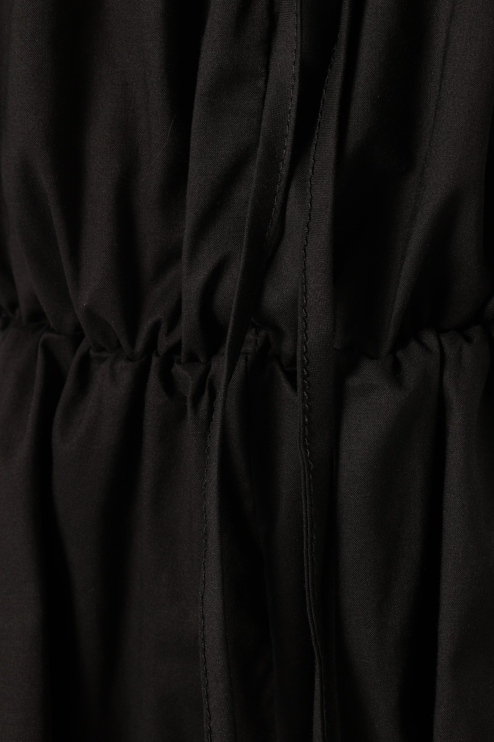 This playful number features a straight. elasticized neckline. perfect for showing off a little skin while keeping things classy. Its short sleeves with elasticized cuffs add a dollop of charm. and the tie close on the bust introduces an enchanting detail.