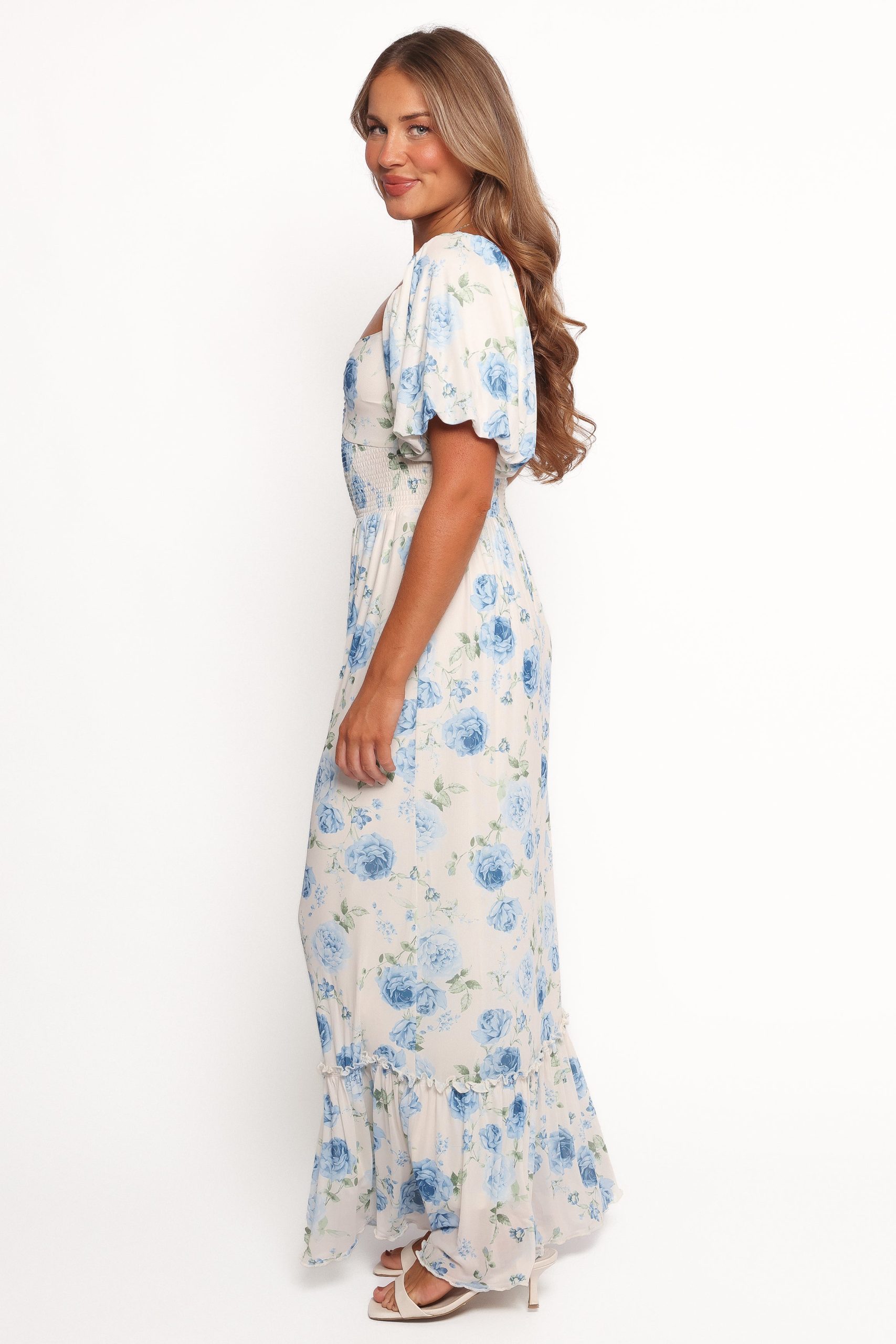 Step into effortless elegance with the Devon Maxi Short Sleeve Dress in Summer Song. This beautifully crafted maxi dress features a timeless square neckline and short sleeves with elasticized cuffs. offering both style and comfort for warm-weather outings.