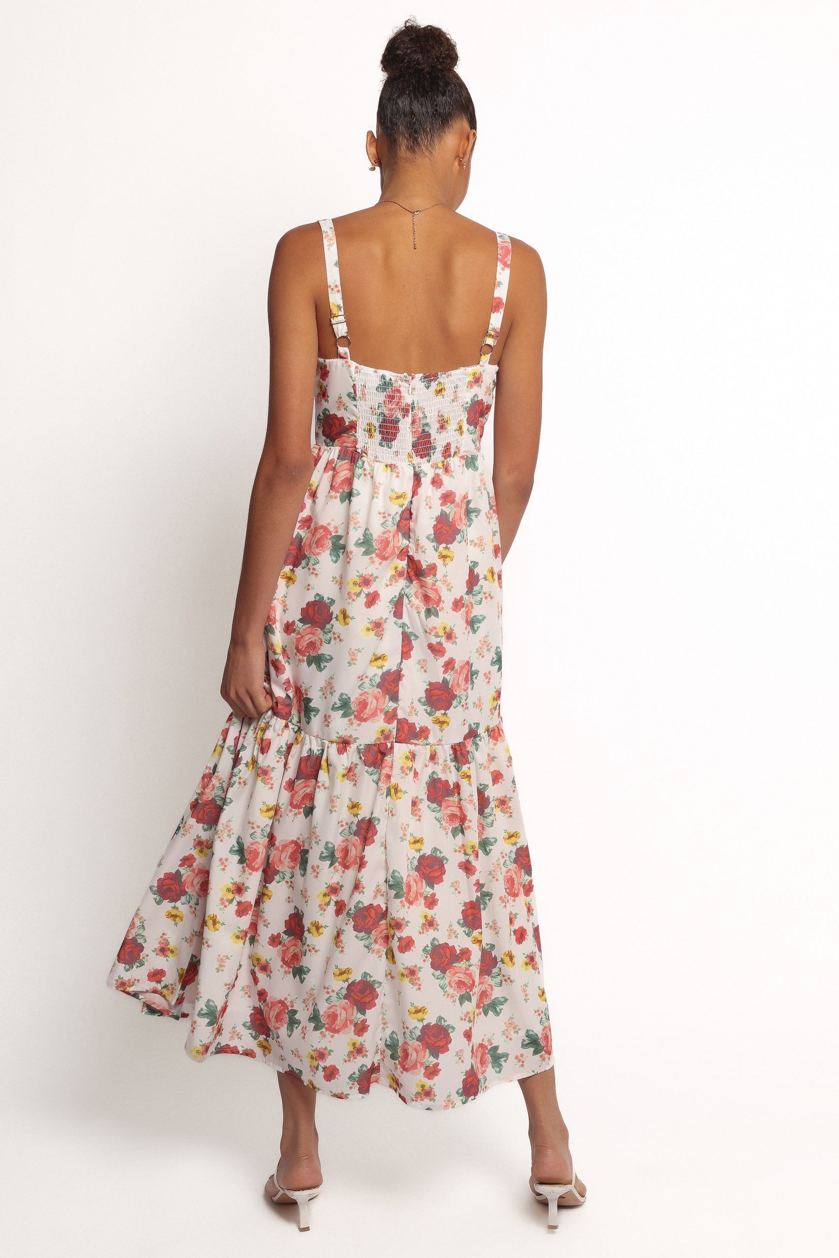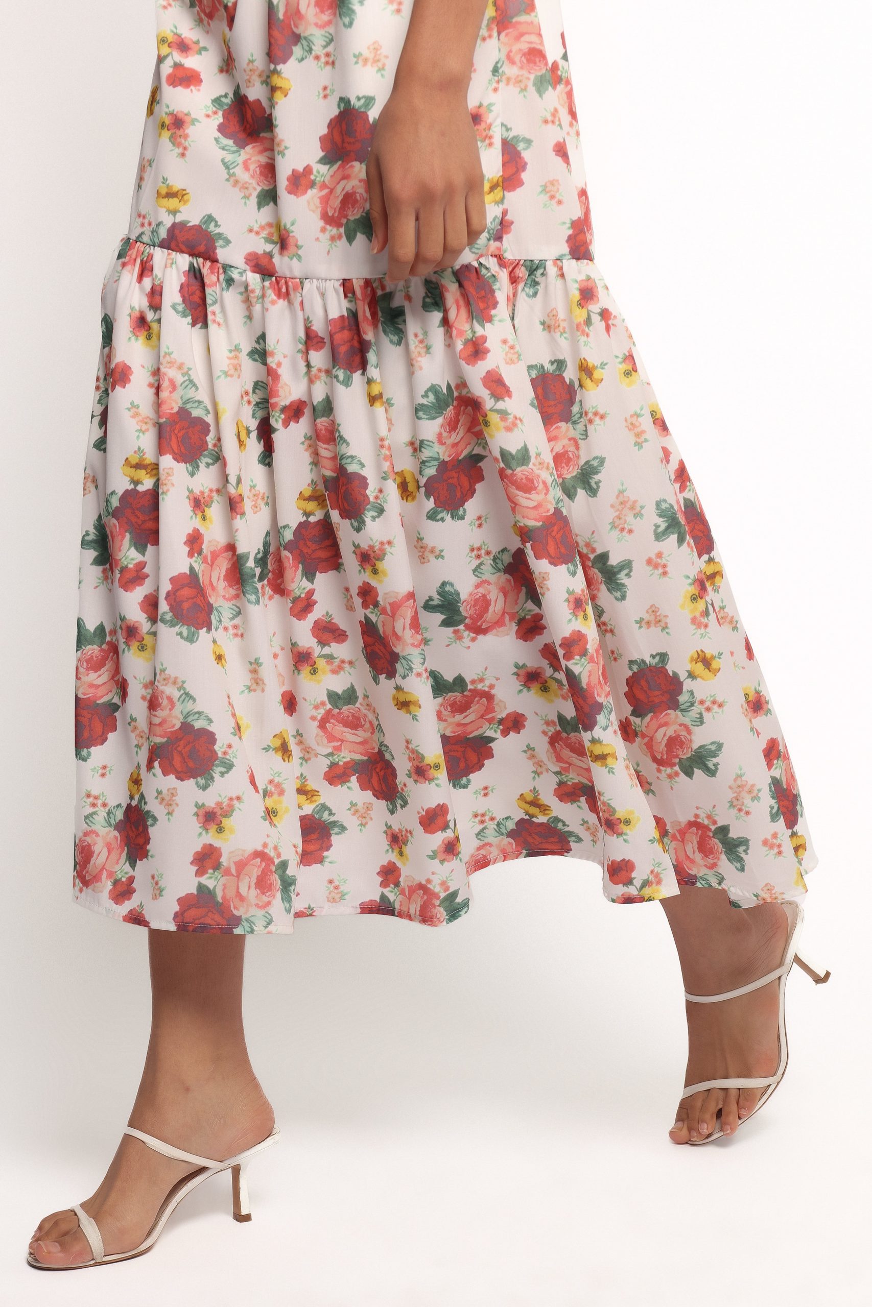 This maxi-length dress features a timeless rose floral print that’s perfect for garden parties. brunch dates. or summer evenings. Designed with a sweetheart neckline and adjustable straps. it offers the perfect customizable fit to suit your style.