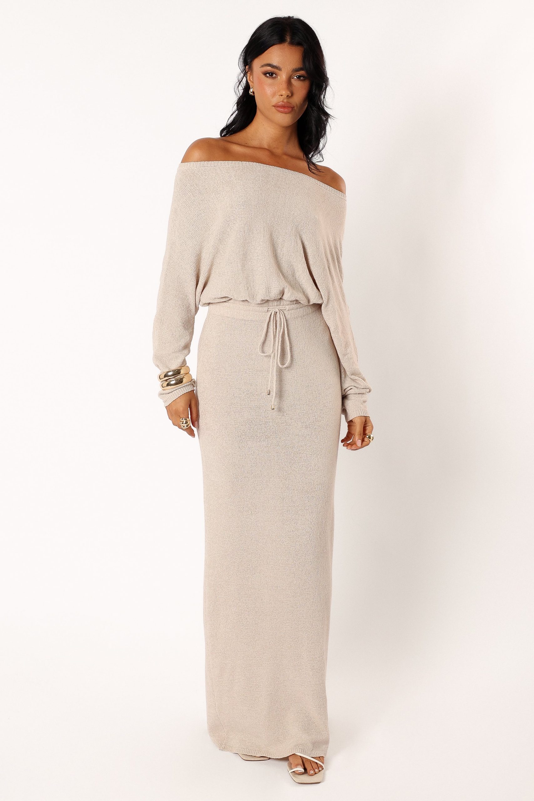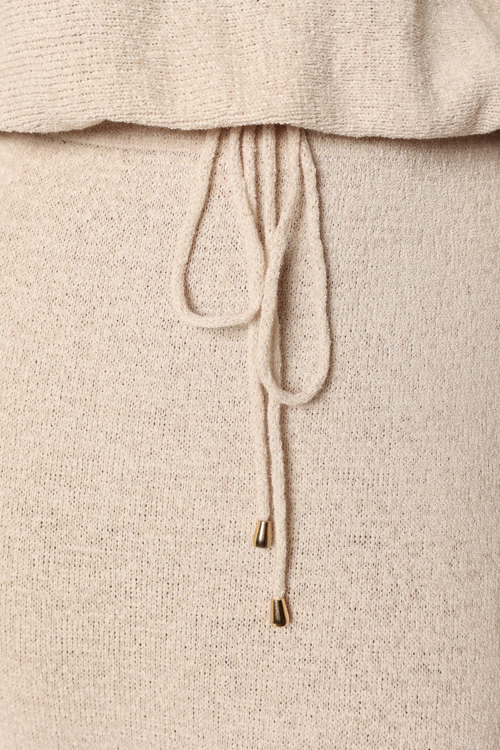 The dress features a round neckline. long sleeves and an elasticised waistband with drawstring. giving you the perfect fit as well as maximum comfort. There’s even a side split for added movement and style.