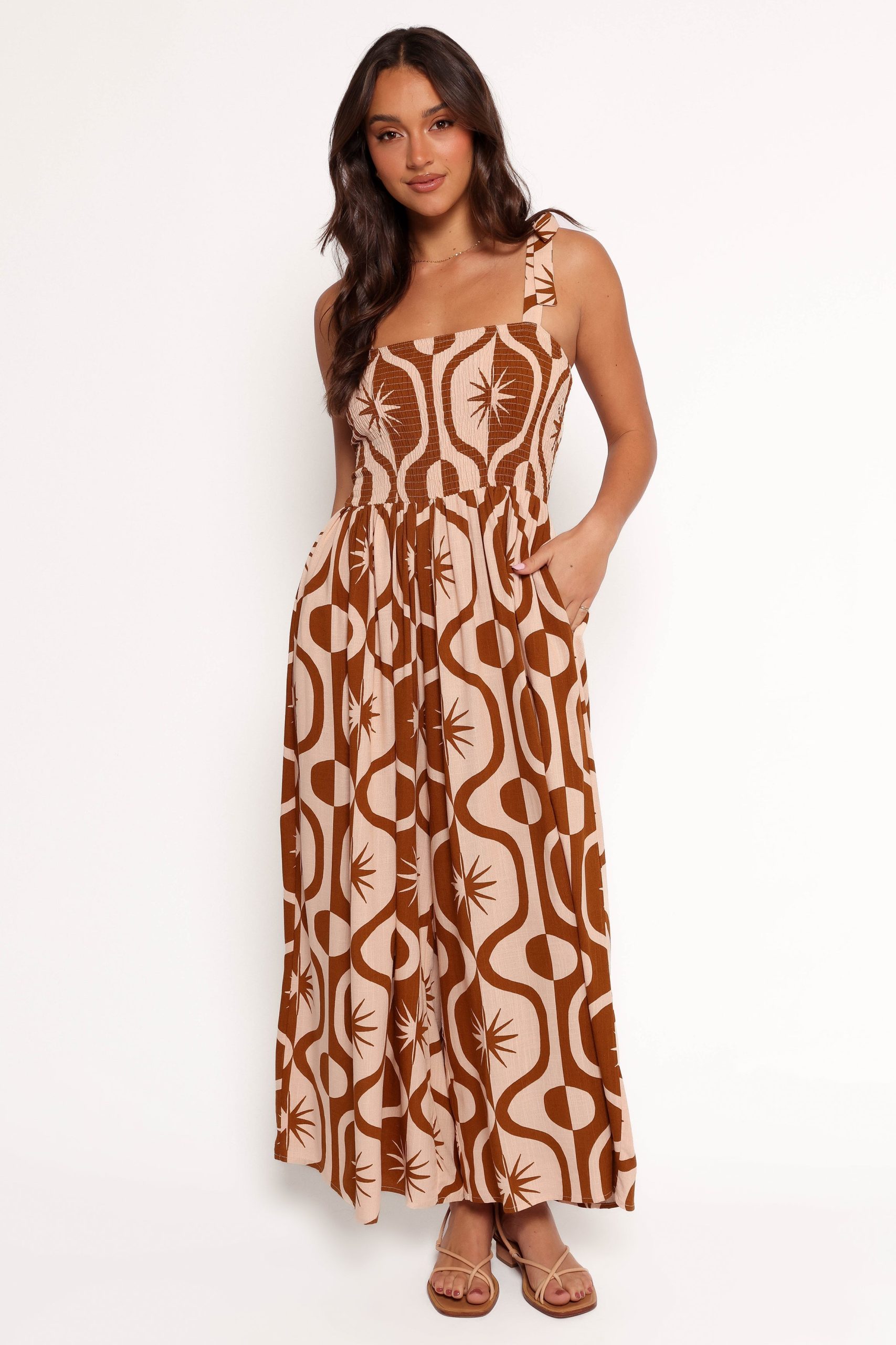 Ginelle Jumpsuit – Tan Print