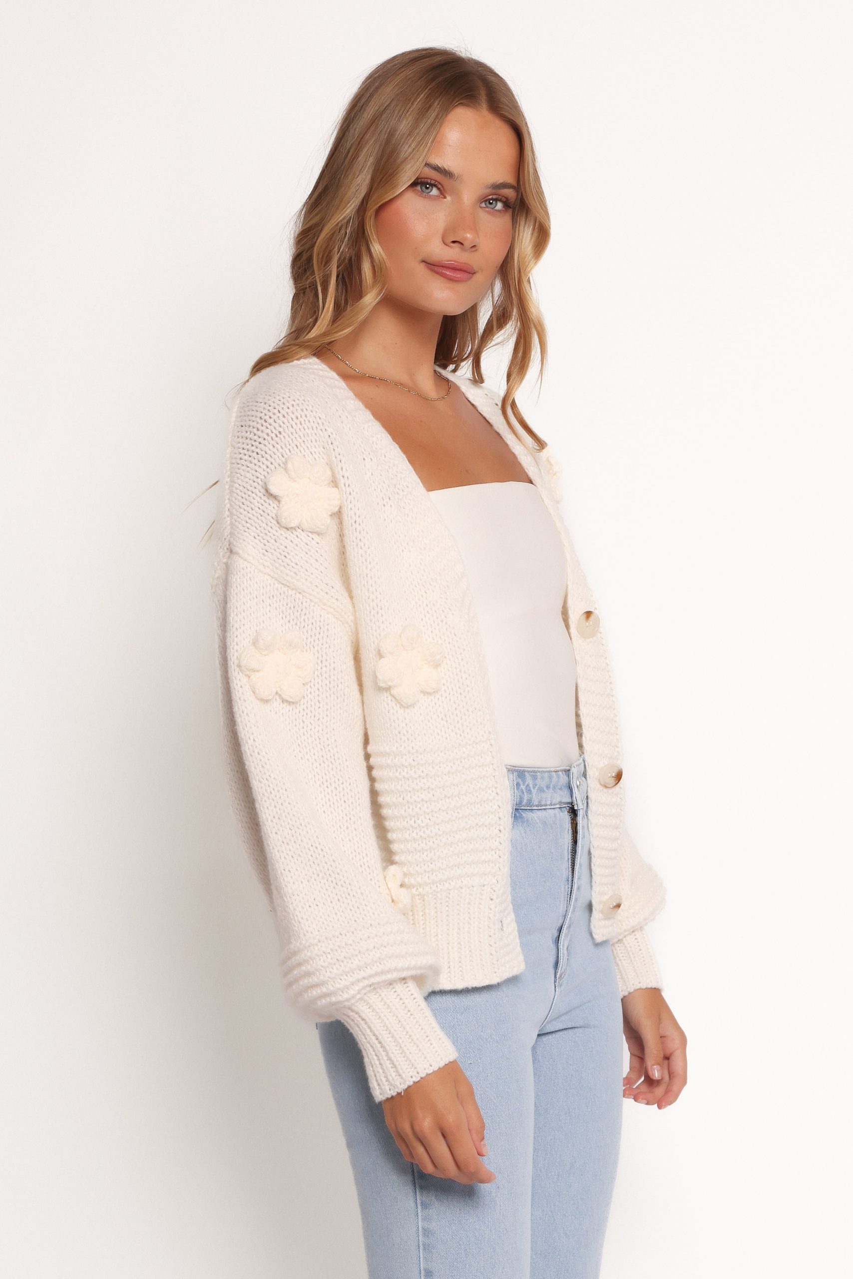 Harlee Flower Cardigan – White