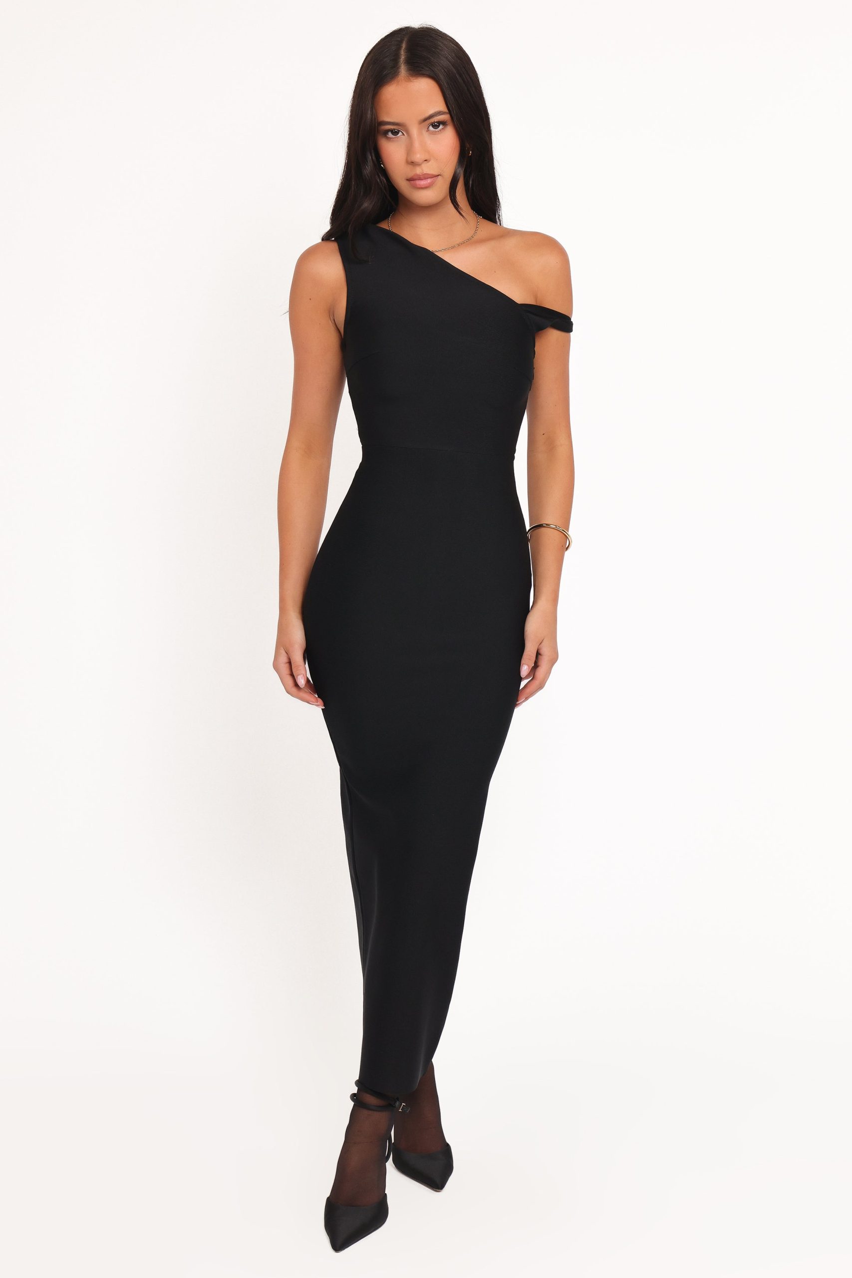 The Hudson Off Shoulder Midi Dress in Black is your go-to piece for effortless sophistication. The off-shoulder design creates an alluring silhouette that highlights your collarbones. while the asymmetrical neckline adds a modern twist that sets you apart from the crowd.
