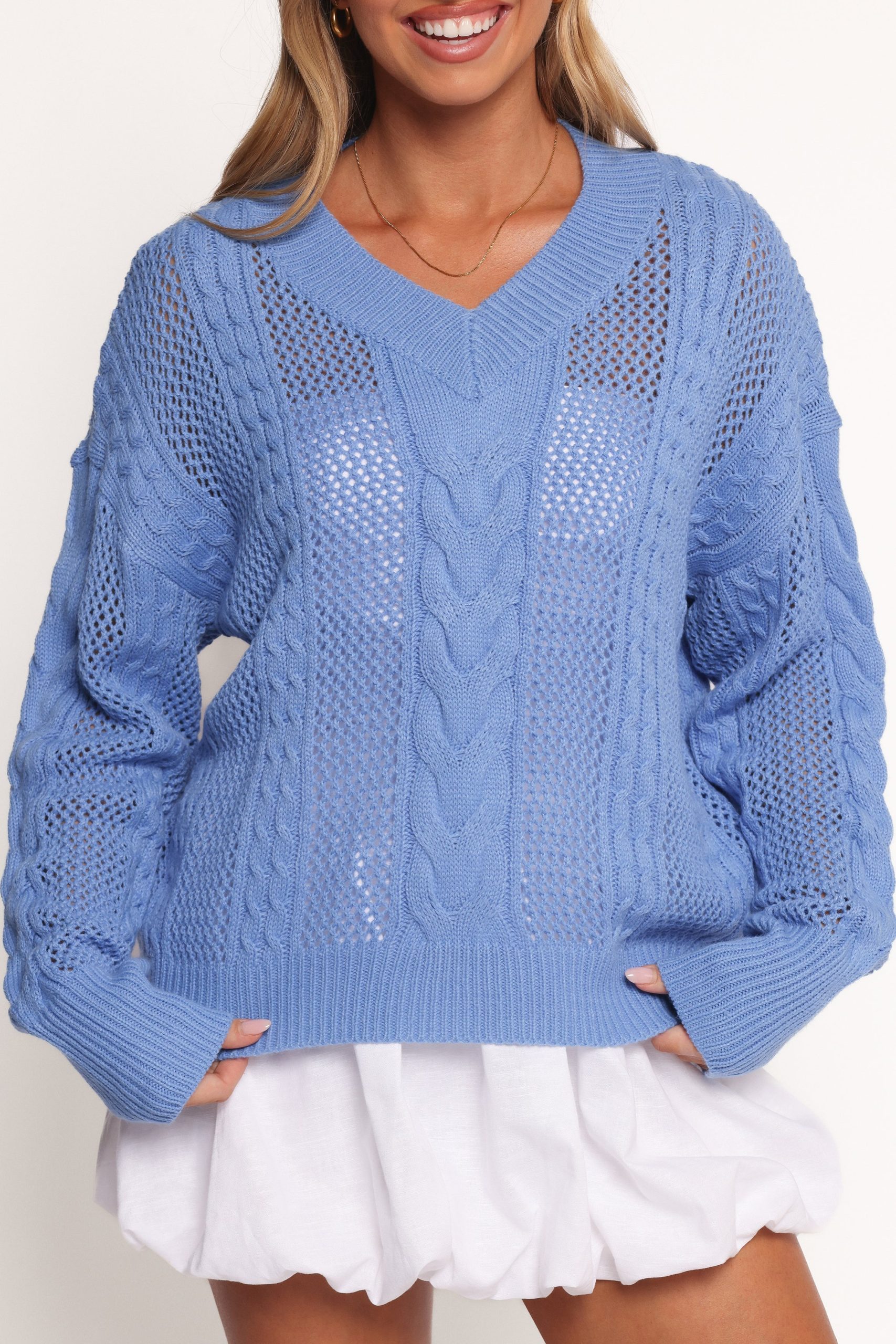 Elevate your everyday wardrobe with the effortlessly chic Janie Knit Sweater in Blue. Designed with a flattering v-neckline and cozy long sleeves. it’s the perfect blend of comfort and style.