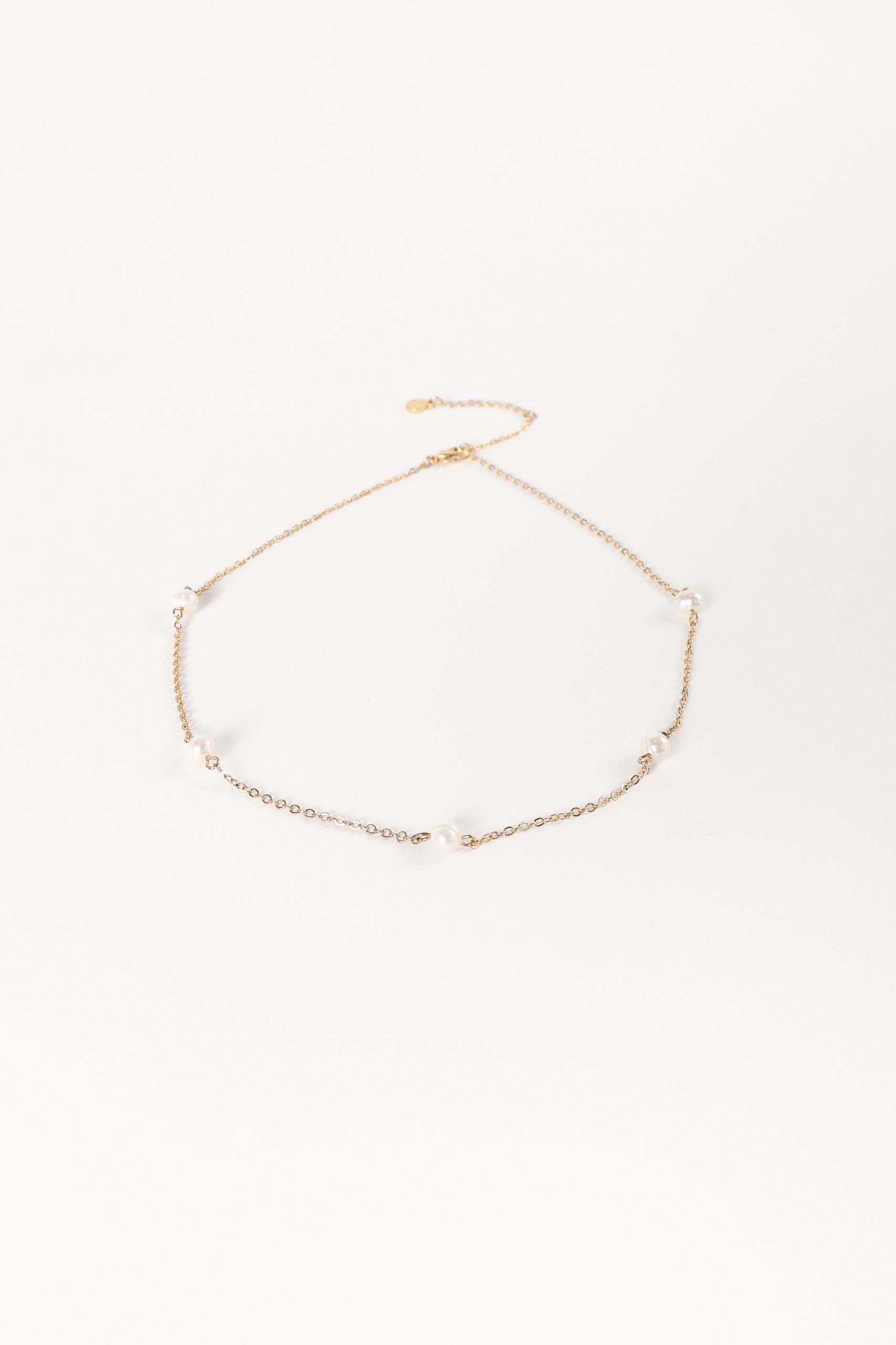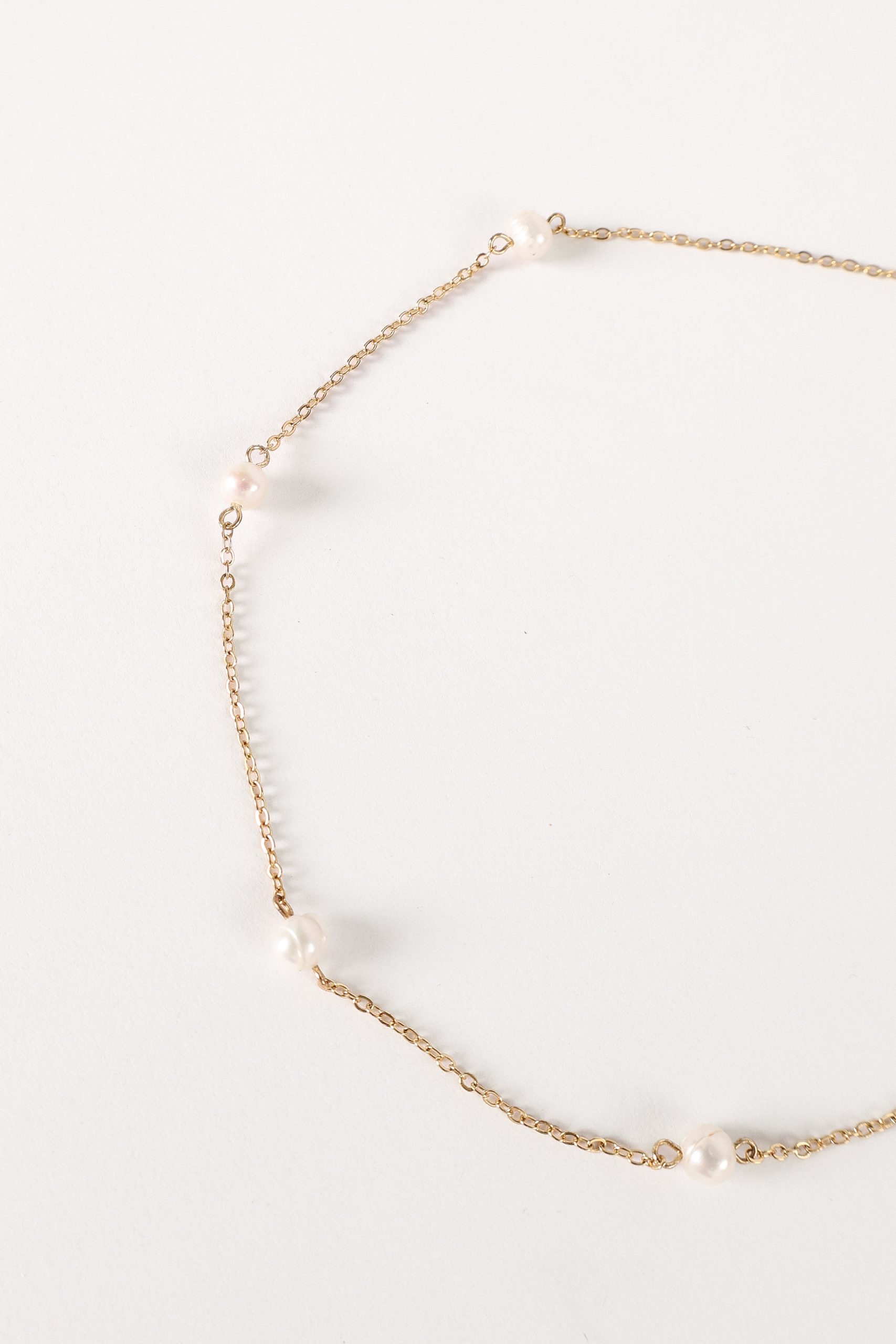 Indulge in the timeless elegance of the Kealy Pearl Necklace – Gold. This exquisite piece features a classic chain design. elegantly interspersed with lustrous pearls to bestow a subtle touch of grace upon its wearer.
