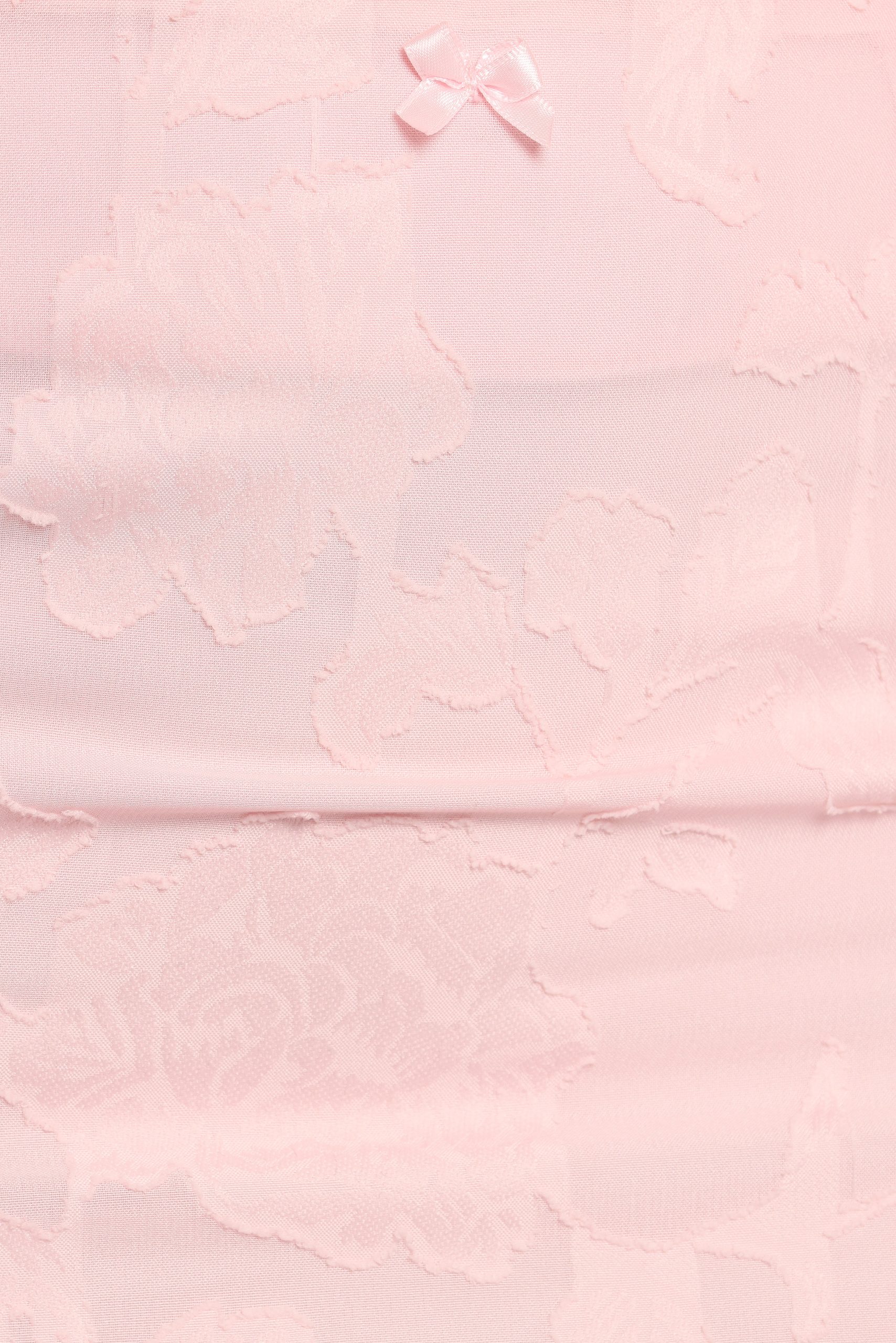 This skirt features a dreamy pink floral embroidered print that looks as though it was plucked straight from a sunlit garden party. The maxi length drapes beautifully. creating a flowy silhouette that moves gracefully with you. while a delicate bow lace detail adds a touch of romance.