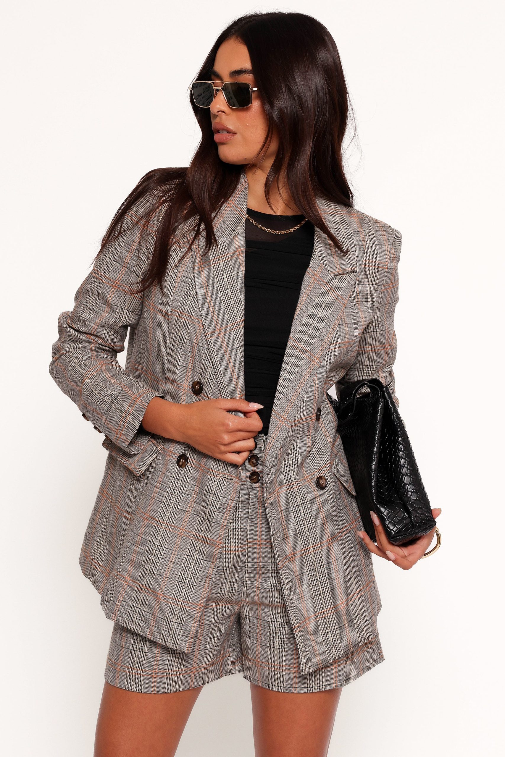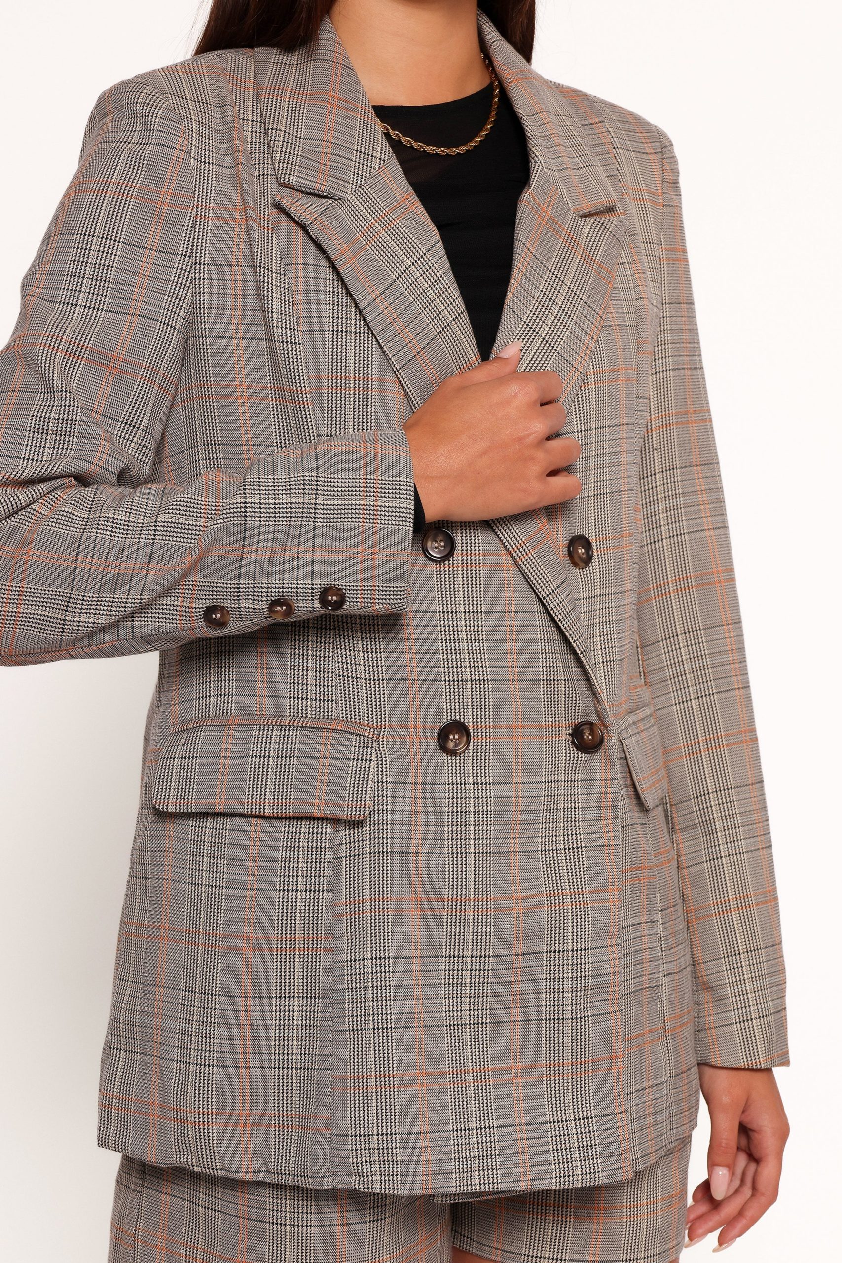 Lesia Double Button Fitted Plaid Blazer – Taupe Multi