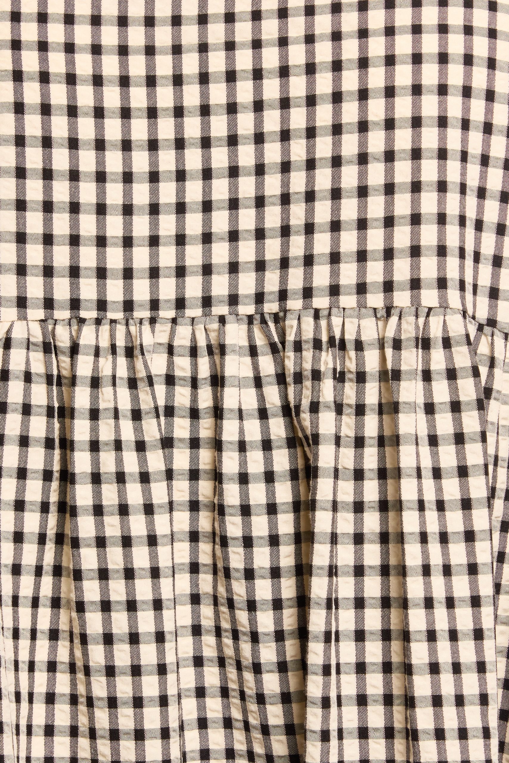 The Micaela Long Sleeve Mini Dress in Black Gingham is the effortless statement piece your wardrobe has been waiting for. With its chic mini length and timeless smock design. this dress brings together comfort and style in a way that feels refreshingly modern.