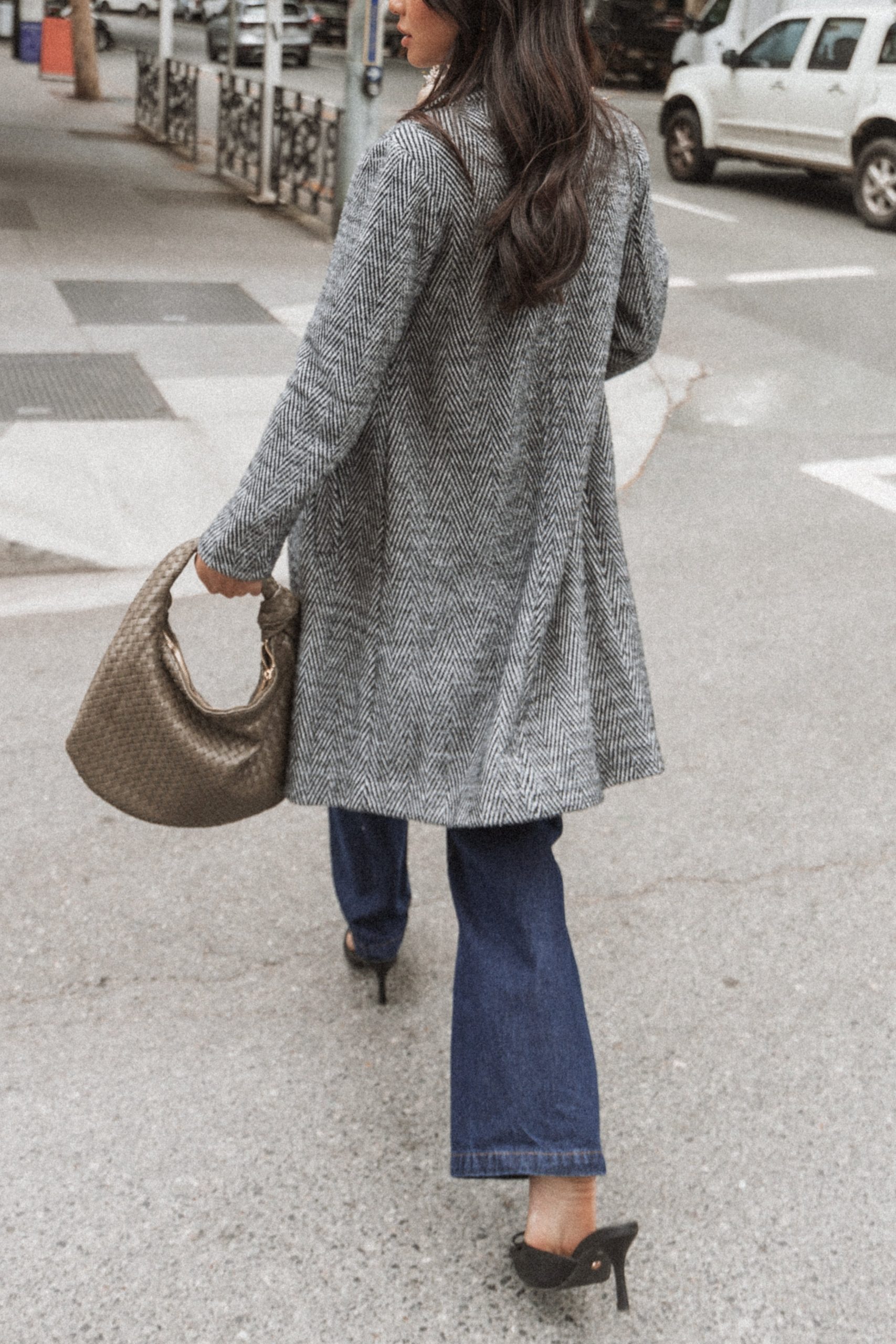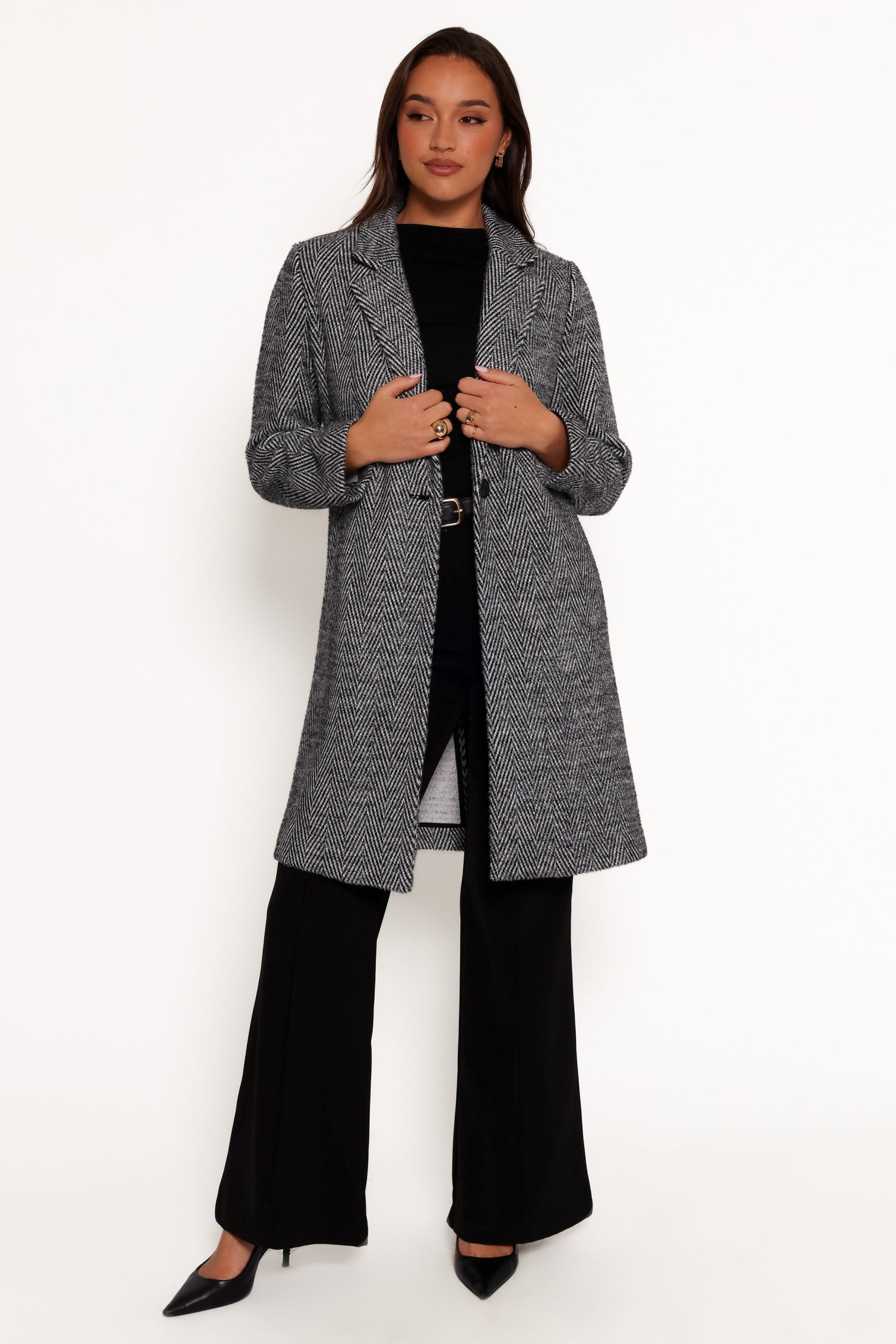 Be the first to review “Nicoletta Single Button Herringbone Coat – Black”