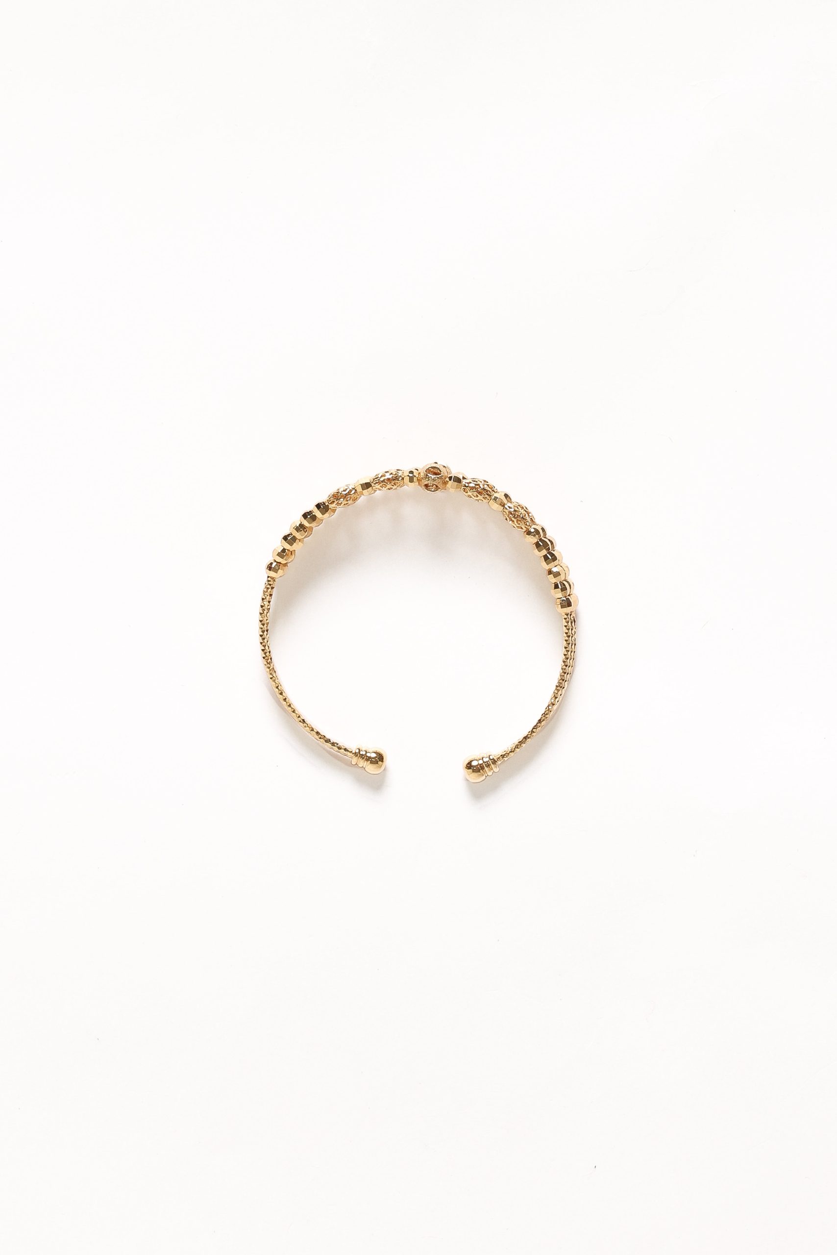 DETAIL Transform your outfit with the Noah Cuff Bracelet in Gold. the ultimate statement piece for any jewelry collection. This exquisite cuff. crafted with a chic gold finish. showcases intricate beaded that catch the light with every movement.