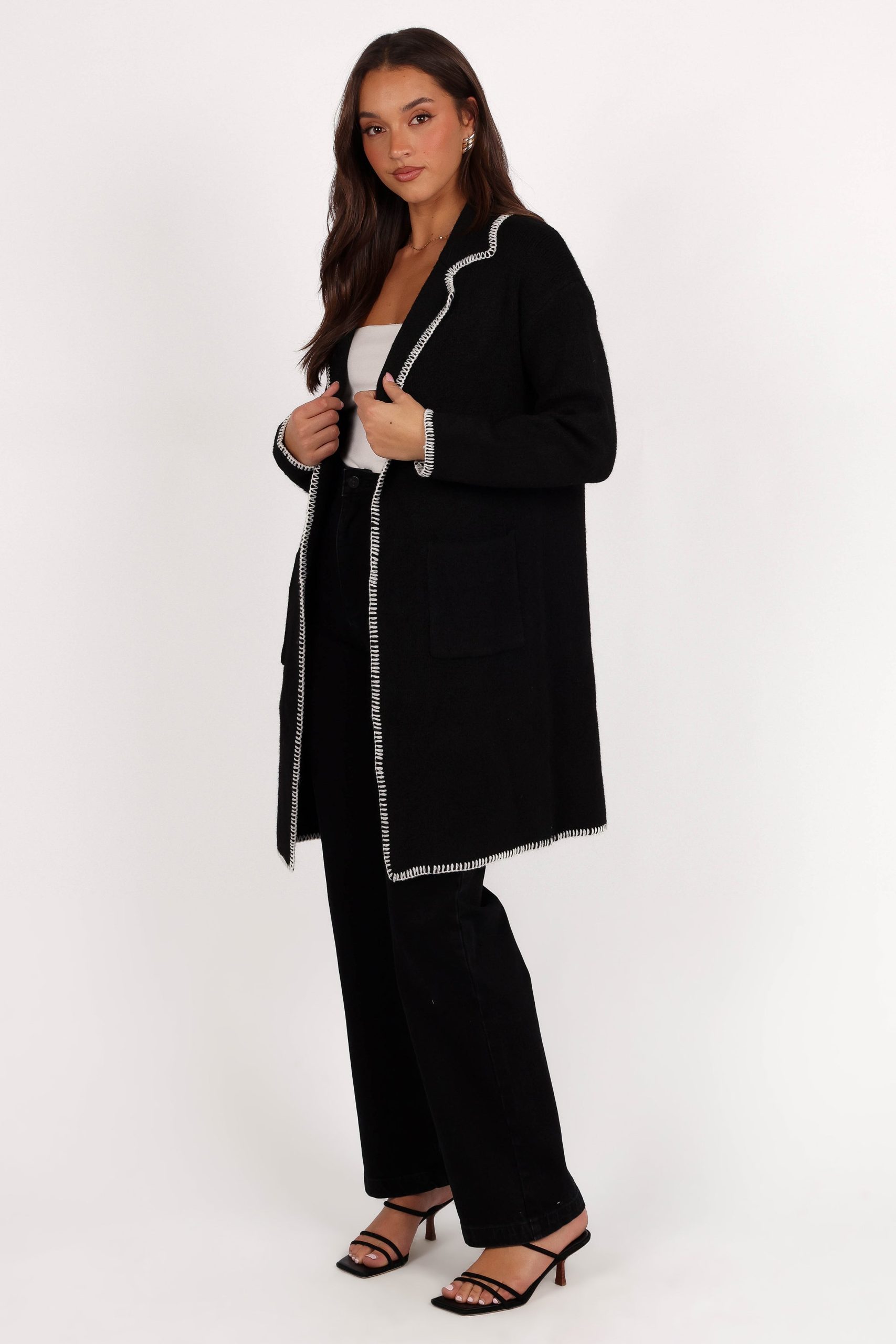 Be the first to review “Oaklynn Contrast Stitch Coatigan – Black”