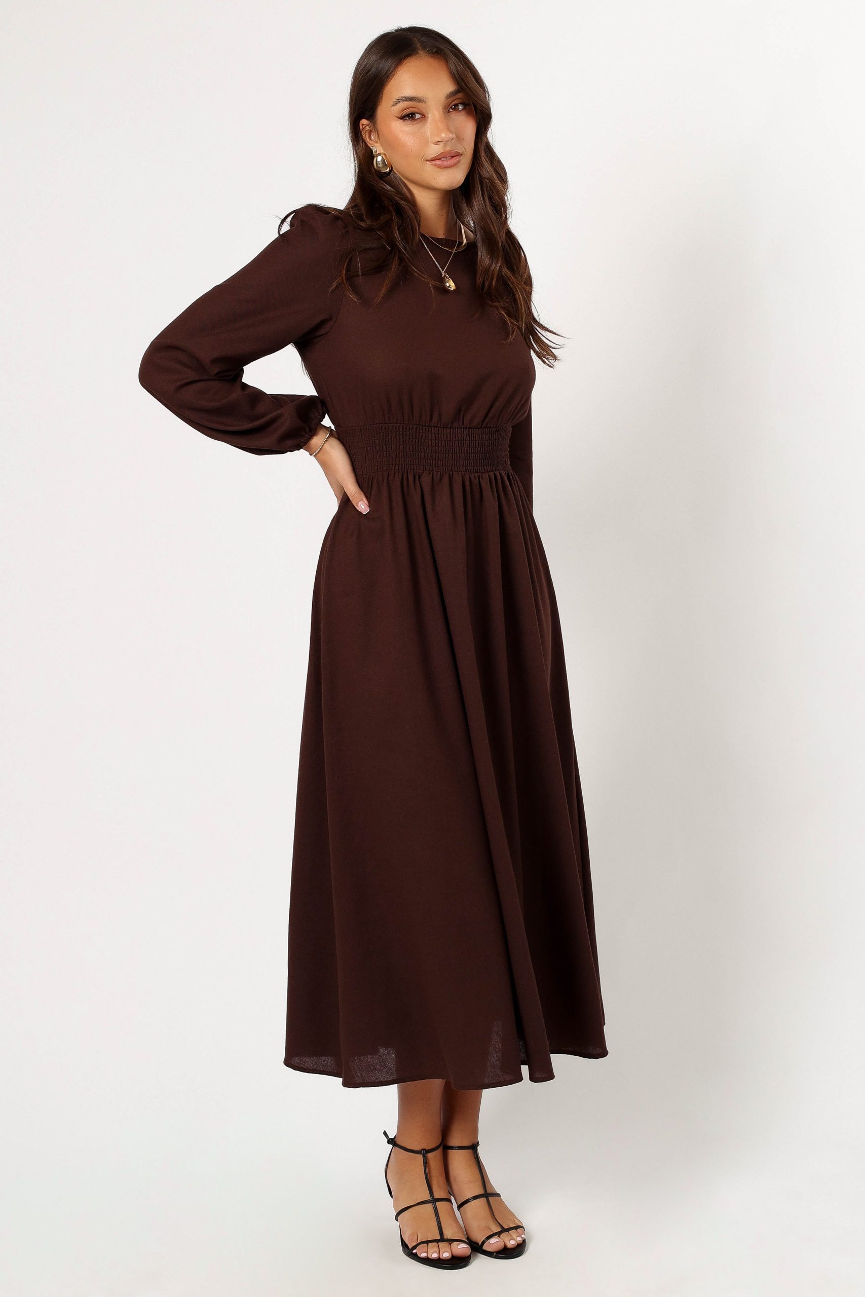 Roman Long Sleeve Maxi Dress – Brown