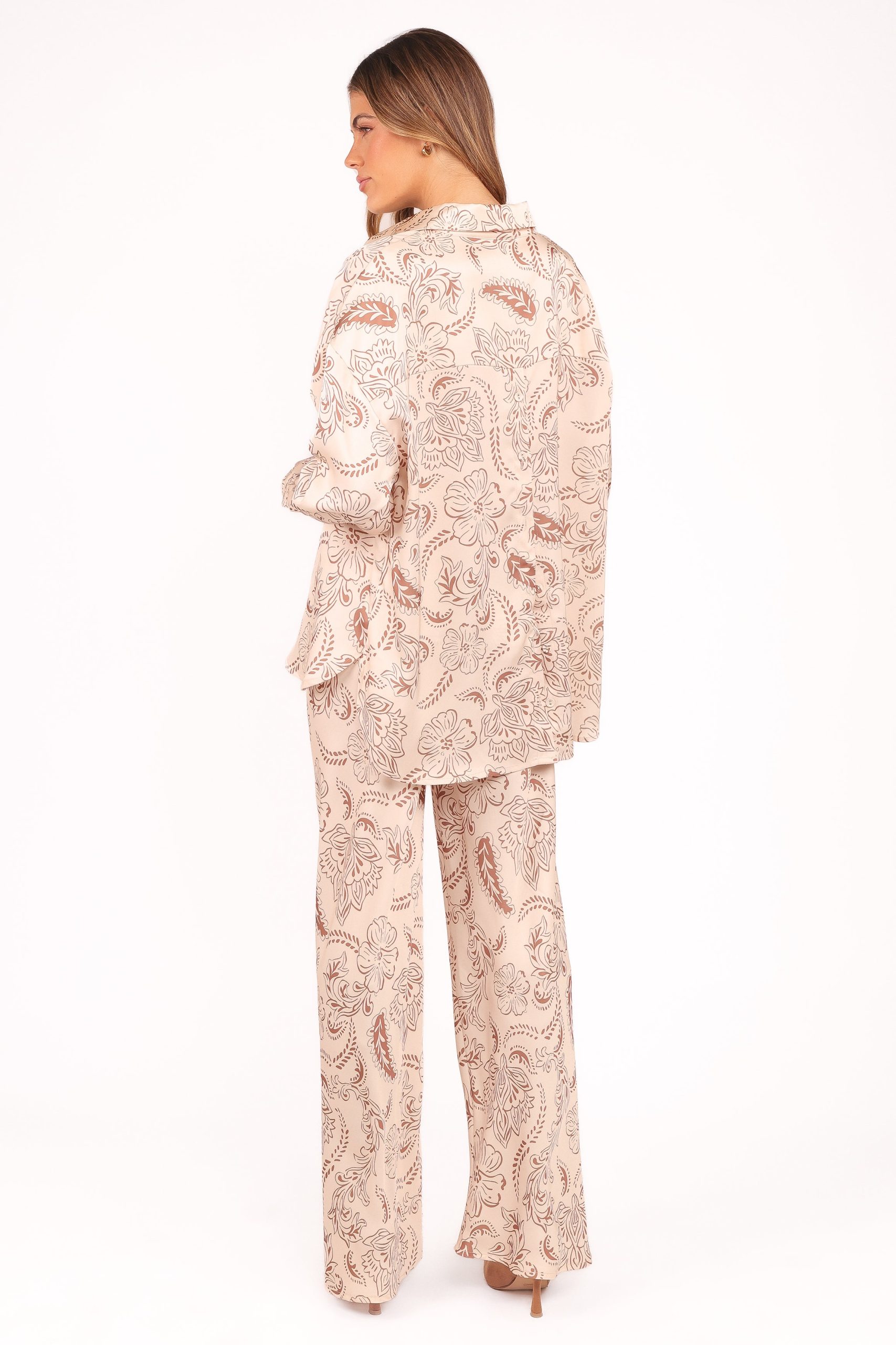 Elevate your wardrobe with the Rosalie Satin Pant in Brown Paisley. Featuring a mid-rise silhouette and an elasticised waistband. these straight-leg pants are as comfortable as they are chic.