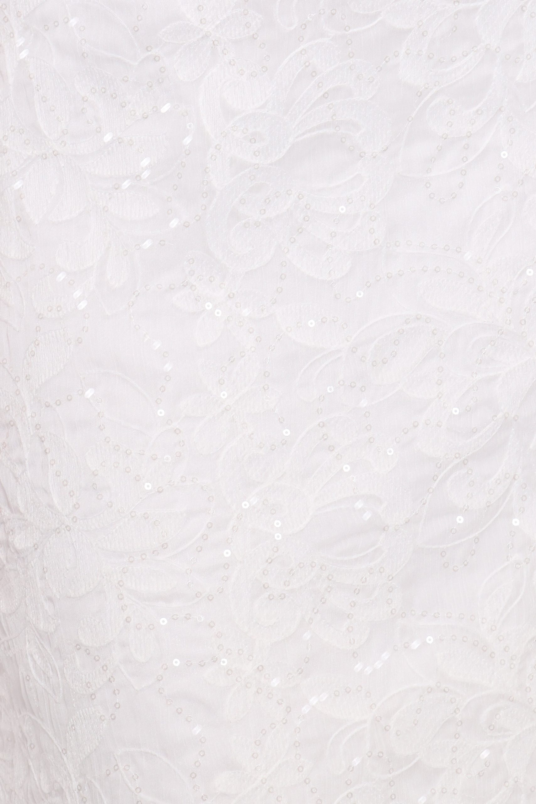 This floor-grazing silhouette features a graceful V neckline and thin. adjustable straps for a customizable fit that flatters your form. Beautifully adorned with intricate embroidered florals and delicate sequins. this dress shimmers softly. catching the light with every step you take.