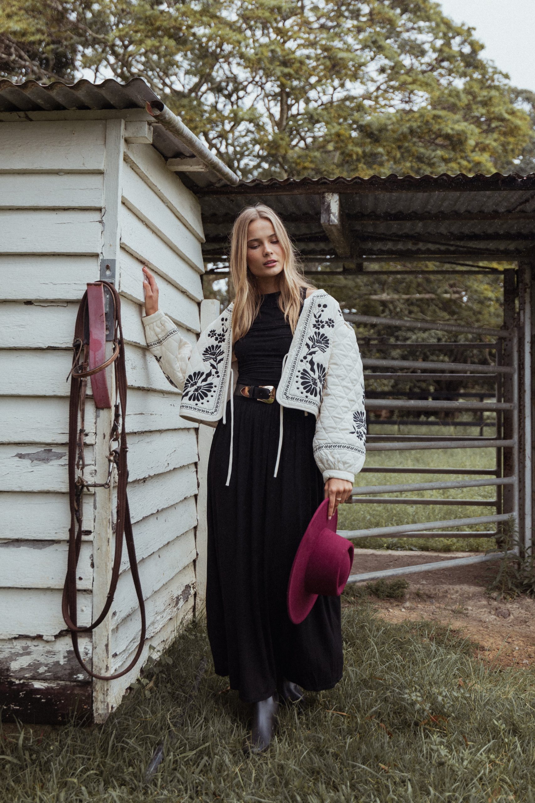 Be the first to review “Vako Quilted Embroidered Jacket – Light Taupe”