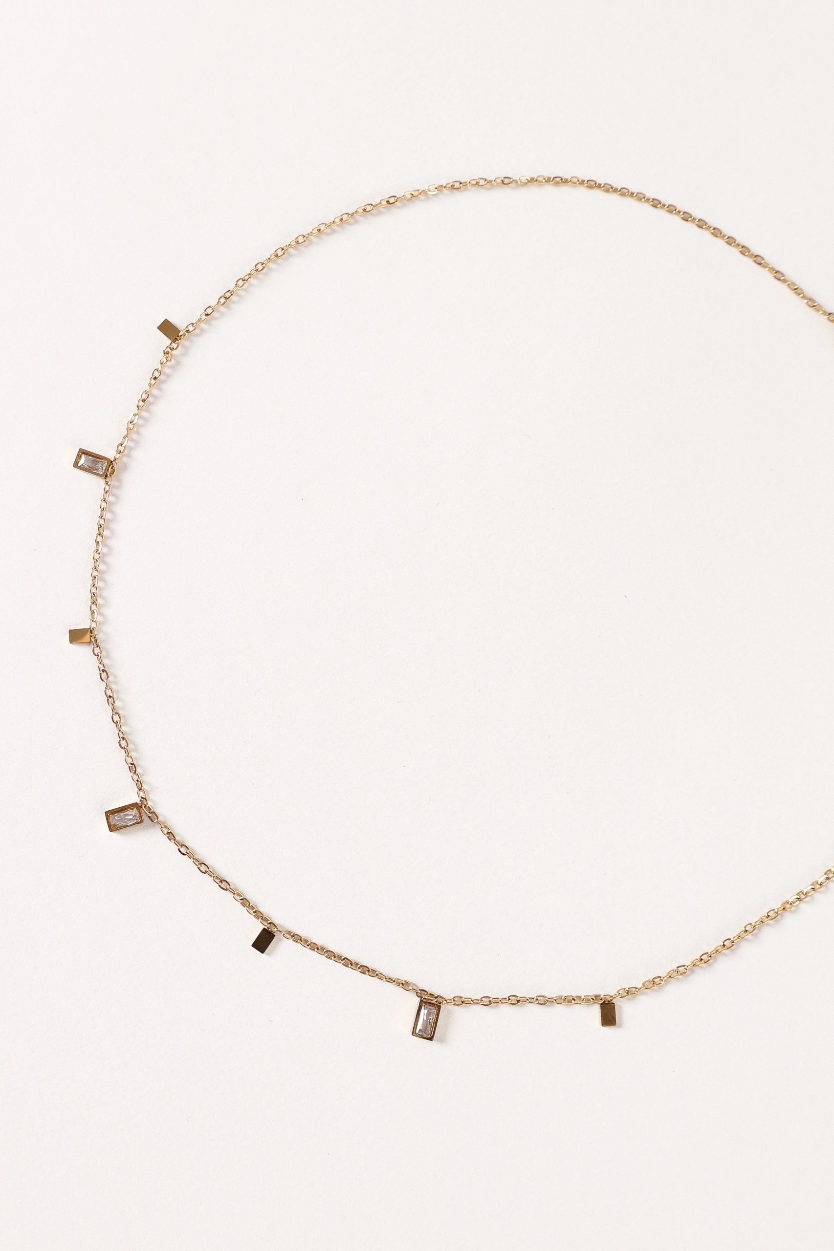 This exquisite piece features a delicate fine gold chain. adorned with a captivating square crystal pendant charm. The necklace is secured with a clasp closure. ensuring comfort and safety while wearing.