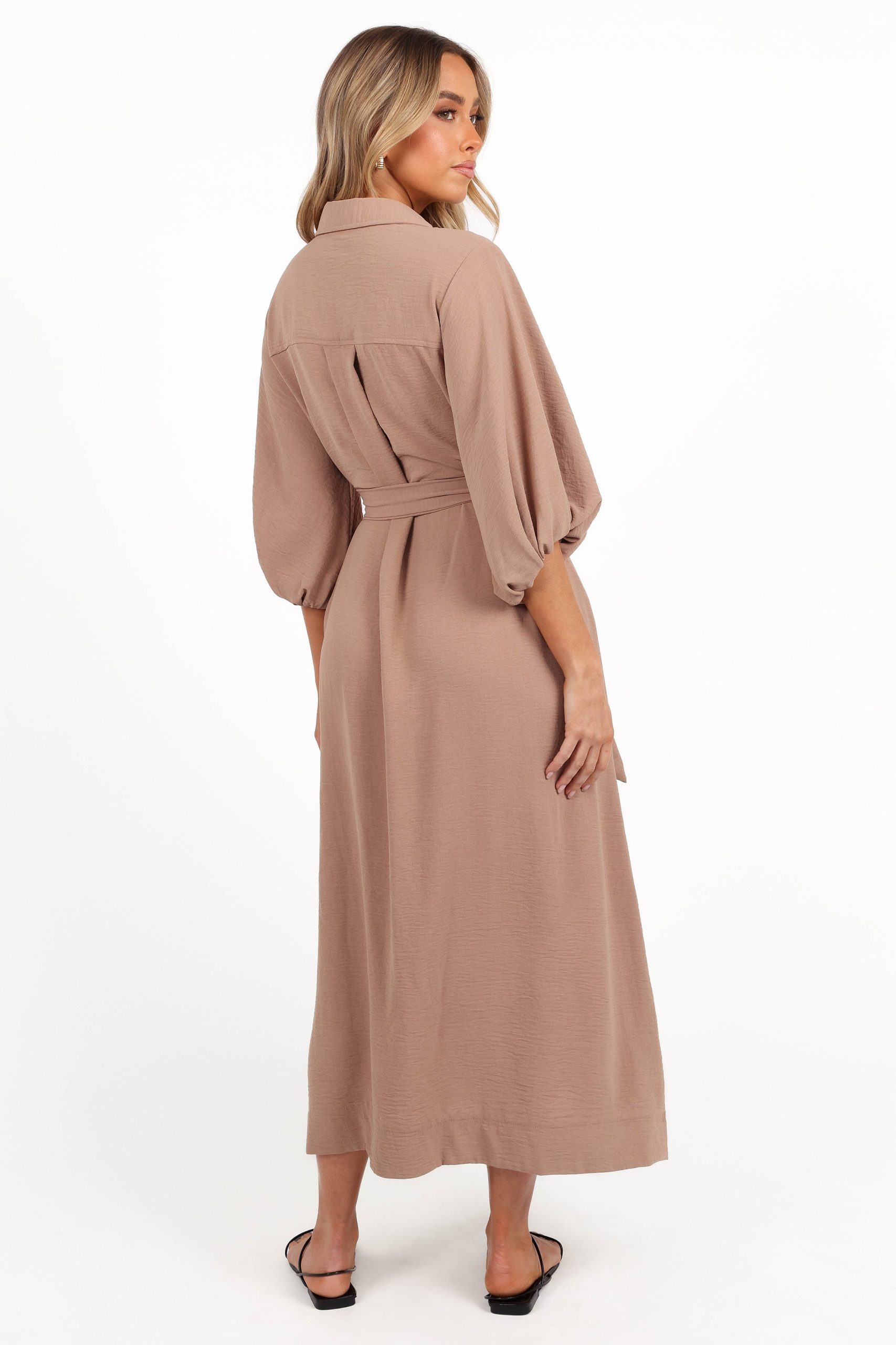 Meet our new midi-length dress. designed for fashion-forward individuals who refuse to sacrifice comfort for style. The mid-length sleeves provide just the right amount of coverage. making it perfect for transitioning between seasons.