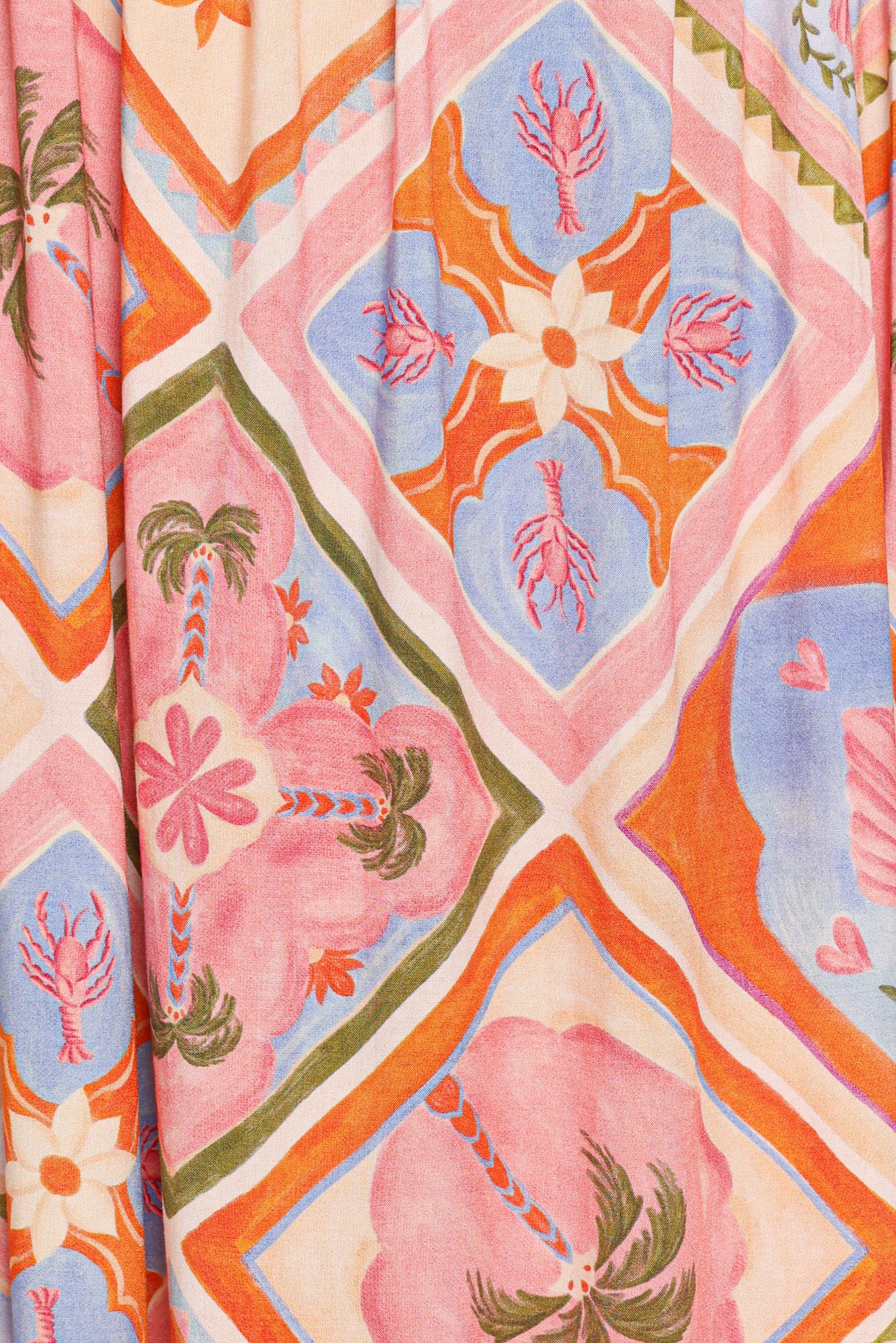 Breathe new life into your wardrobe with the Zanna Mini Dress in Multi Tile. This smock-style dress combines effortless style with unmatched comfort. Featuring a breezy mini length. a flattering V-neckline. and mid-length sleeves. its perfect for everything from brunch dates to beachside strolls.